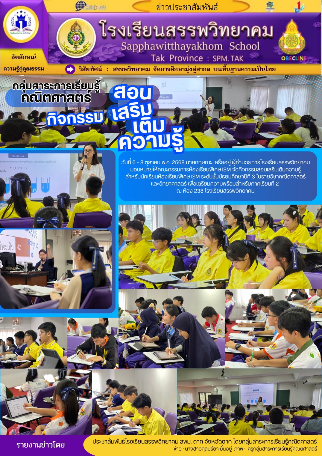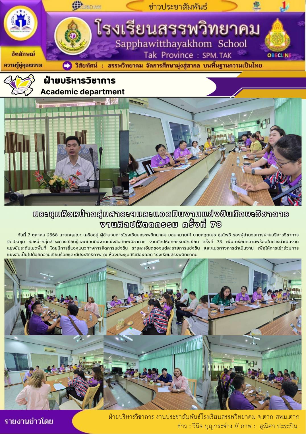 วันที่ ๘ ตุลาคม พ.ศ. ๒๕๖๘ โรงเรียนสรรพวิทยาคม จัดการประชุมคณะครู และบุคลากรทางการศึกษา ครั้งที่ ๕/๒๕๖๘ เพื่อสรุปผลการดำเนินงานในภาคเรียนที่ ๑ ปีการศึกษา ๒๕๖๘ ที่ผ่านมา และเปิดโอกาสให้แลกเปลี่ยนความคิด…