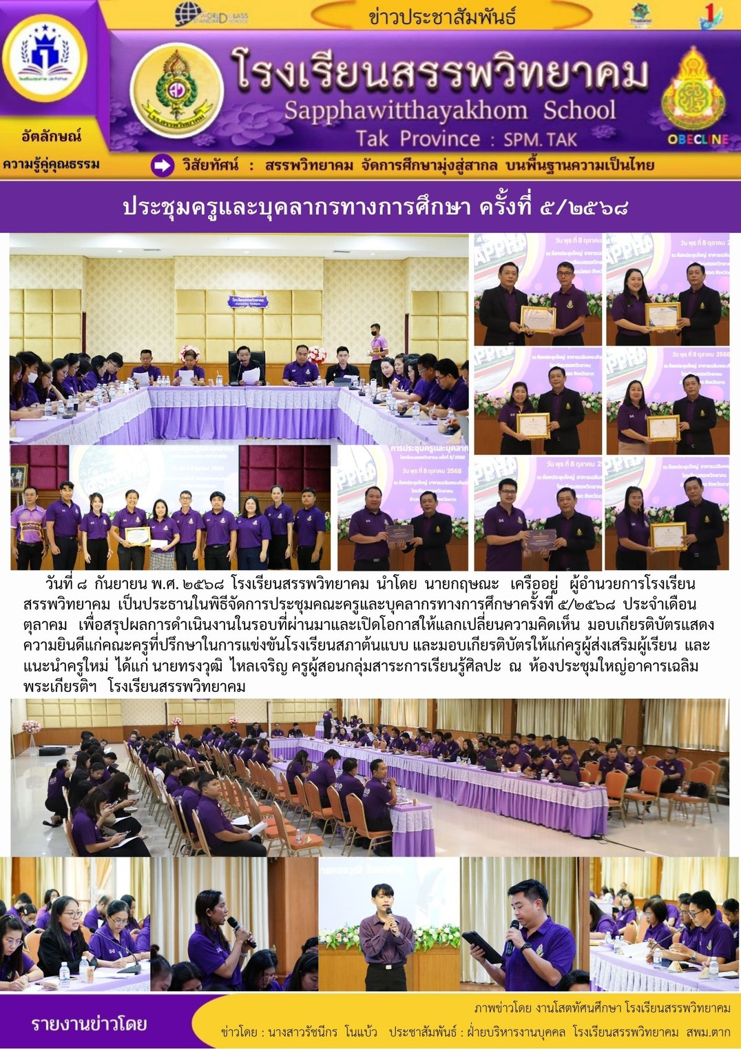 โรงเรียนสรรพวิทยาคม จัดการประชุมคณะครู และบุคลากรทางการศึกษา ครั้งที่ ๕/๒๕๖๘