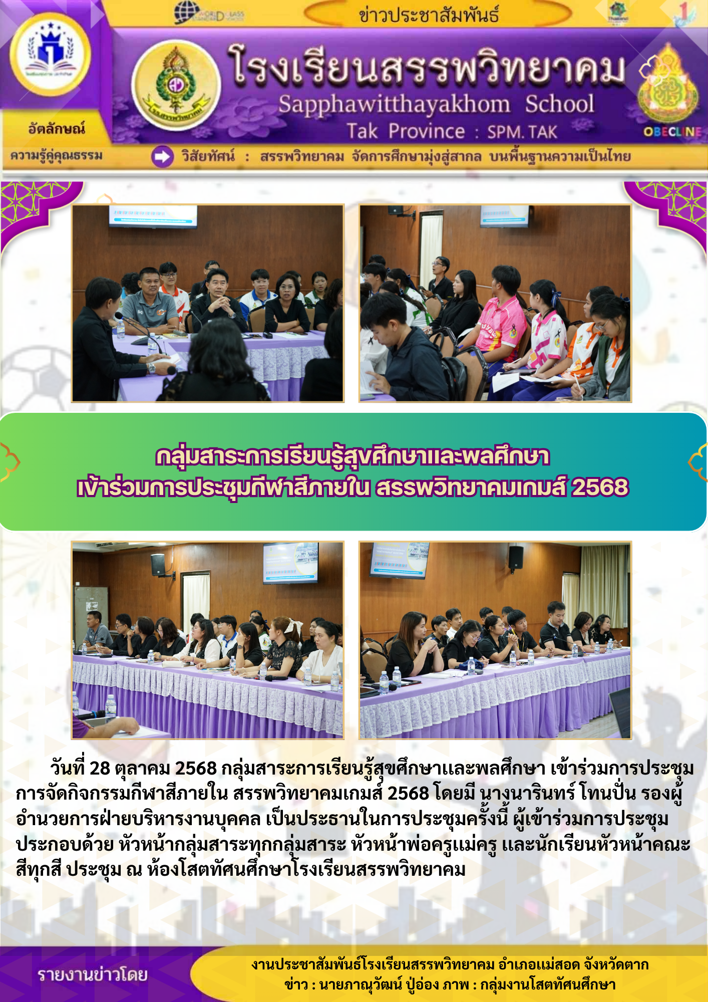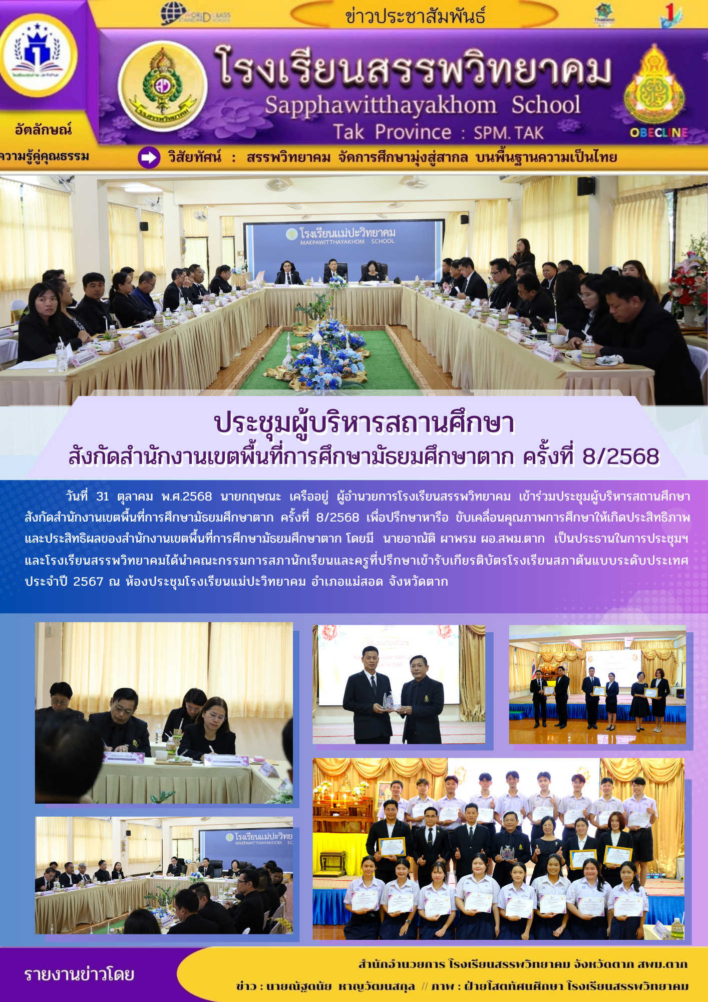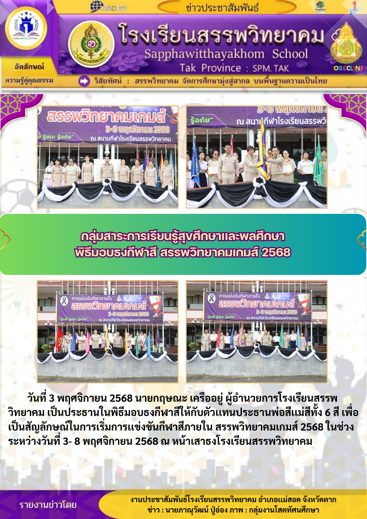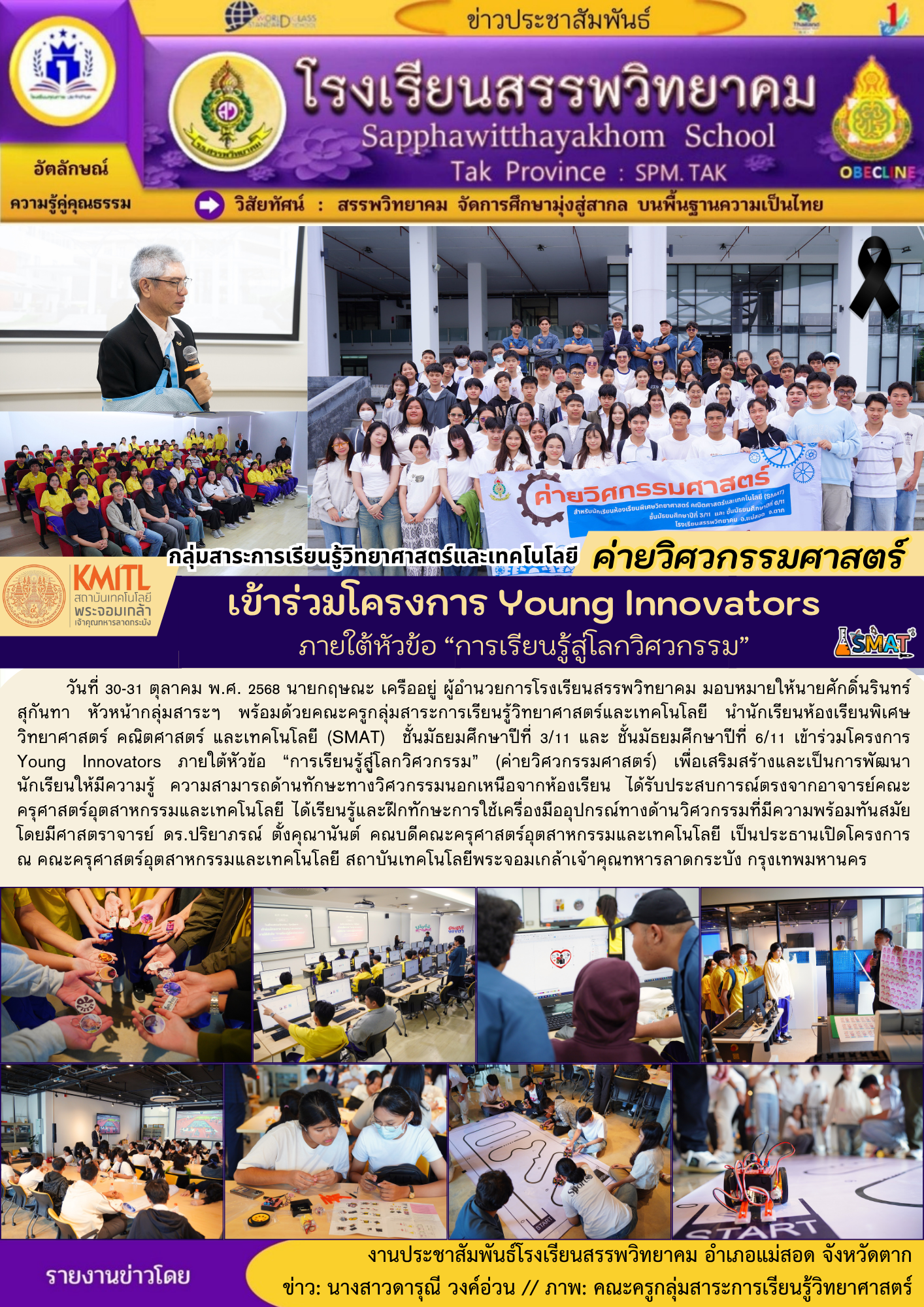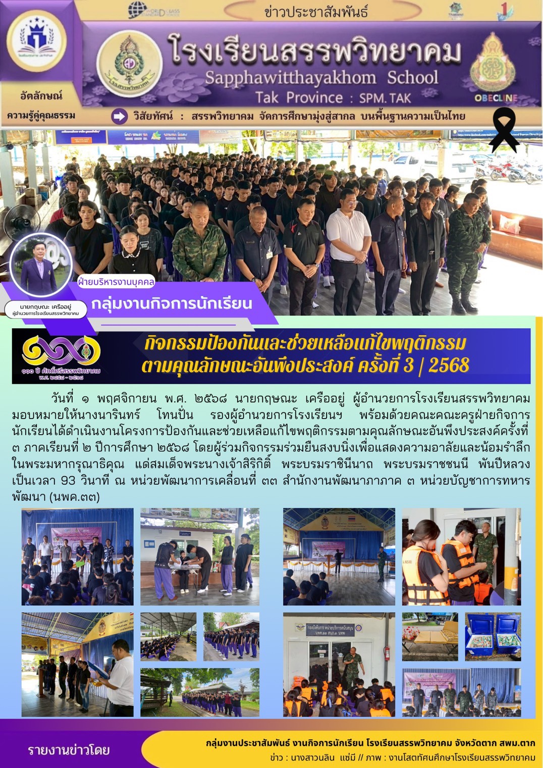 วันที่ ๗ พฤศจิกายน ๒๕๖๘ นายกฤษณะ เครืออยู่ ผู้อำนวยการโรงเรียนสรรพวิทยาคม พร้อมด้วยคณะผู้บริหาร คณะครูกลุ่มงานเทคโนโลยี และนักเรียน รับมอบอุปกรณ์เสริมสร้างทักษะดิจิทัล จาก Depa Thailand ตามโครงการ Cod…