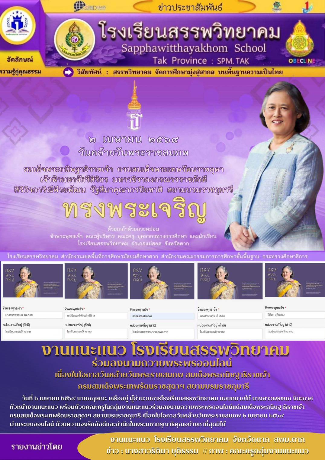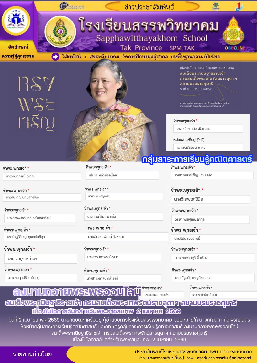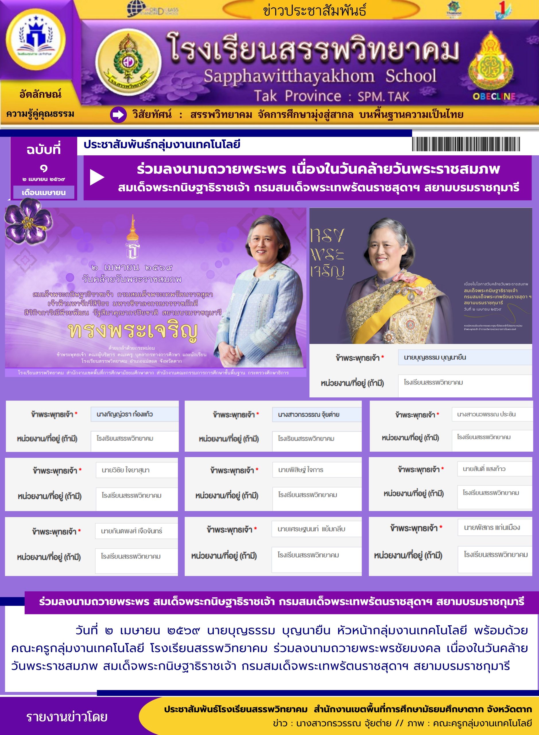 โรงเรียนสรรพวิทยาคม ประกาศ เรื่อง ผลการคัดเลือกนักเรียนระดับชั้นมัธยมศึกษาปีที่ ๔ ประเภทห้องเรียนปกติ ห้องเรียนภาษาเมียนมา (เพิ่มเติม) ประจำปีการศึกษา ๒๕๖๙