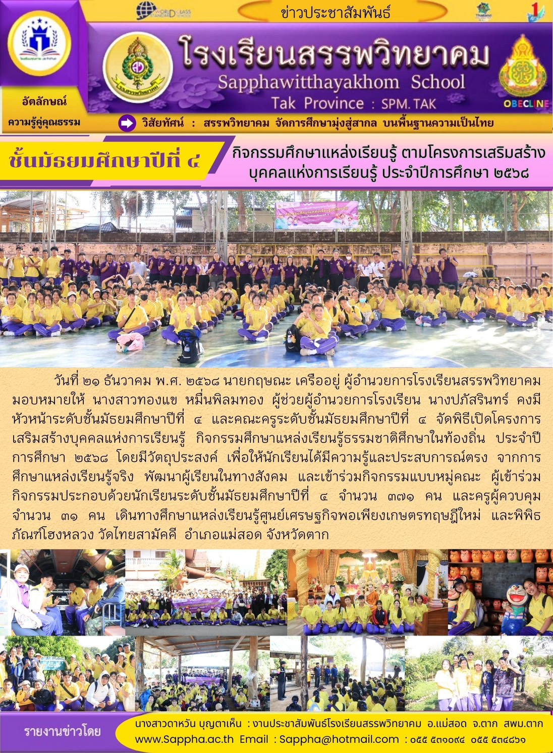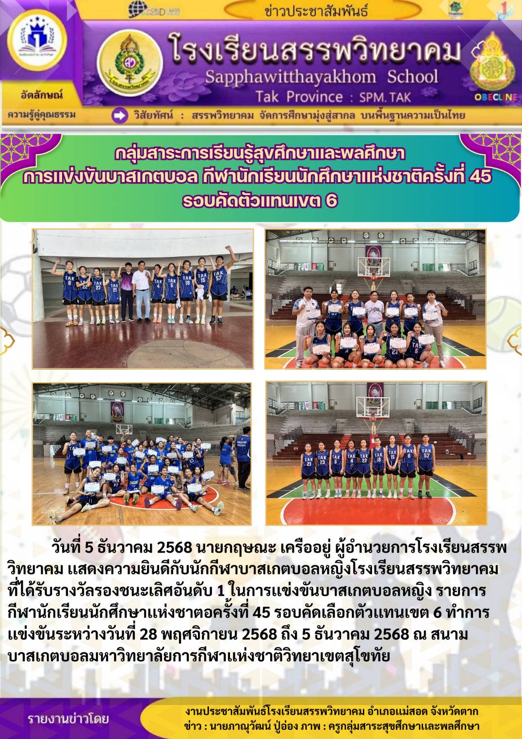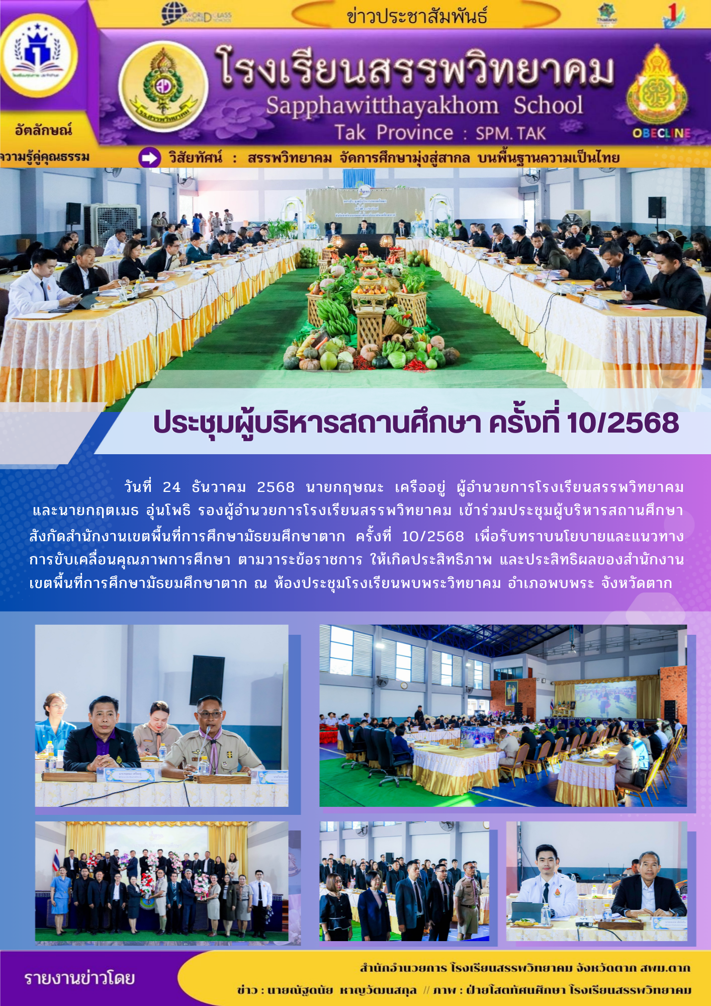 โรงเรียนสรรพวิทยาคม ร่วมพิธีเปิดการแข่งขันกีฬา-กรีฑานักเรียนมัธยมศึกษา ฝั่งตะวันตก “ทวิธารเกมส์” ครั้งที่ ๑ จังหวัดตาก ประจำปี พ.ศ. ๒๕๖๘