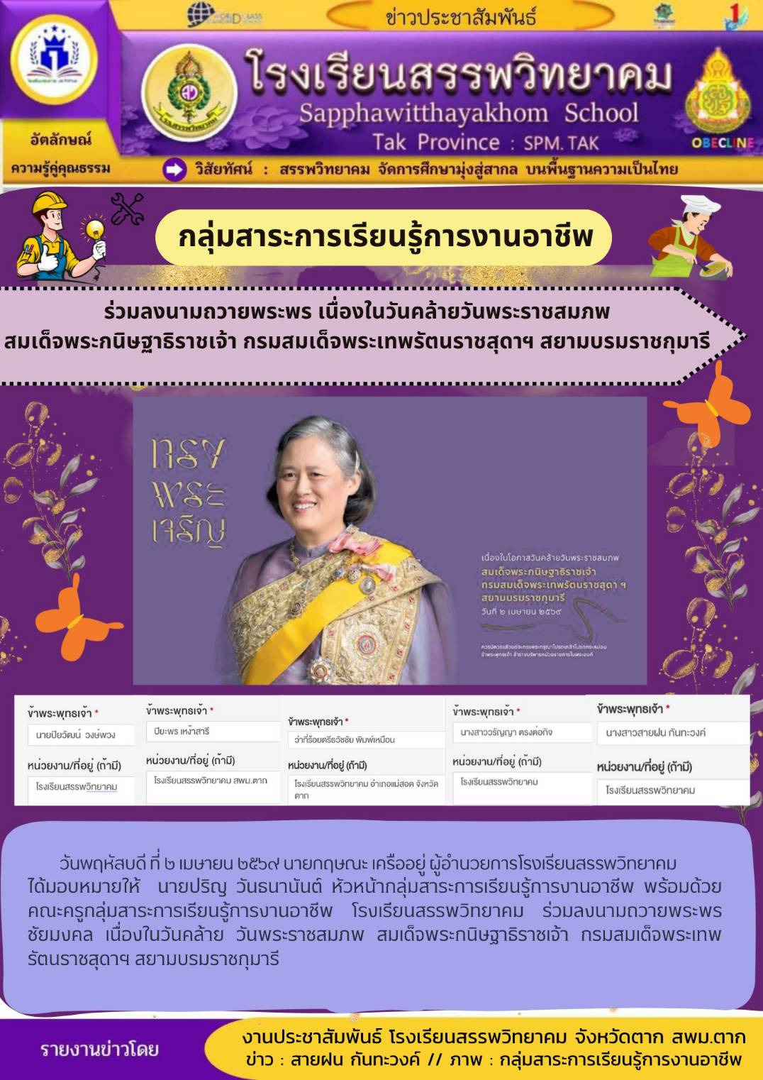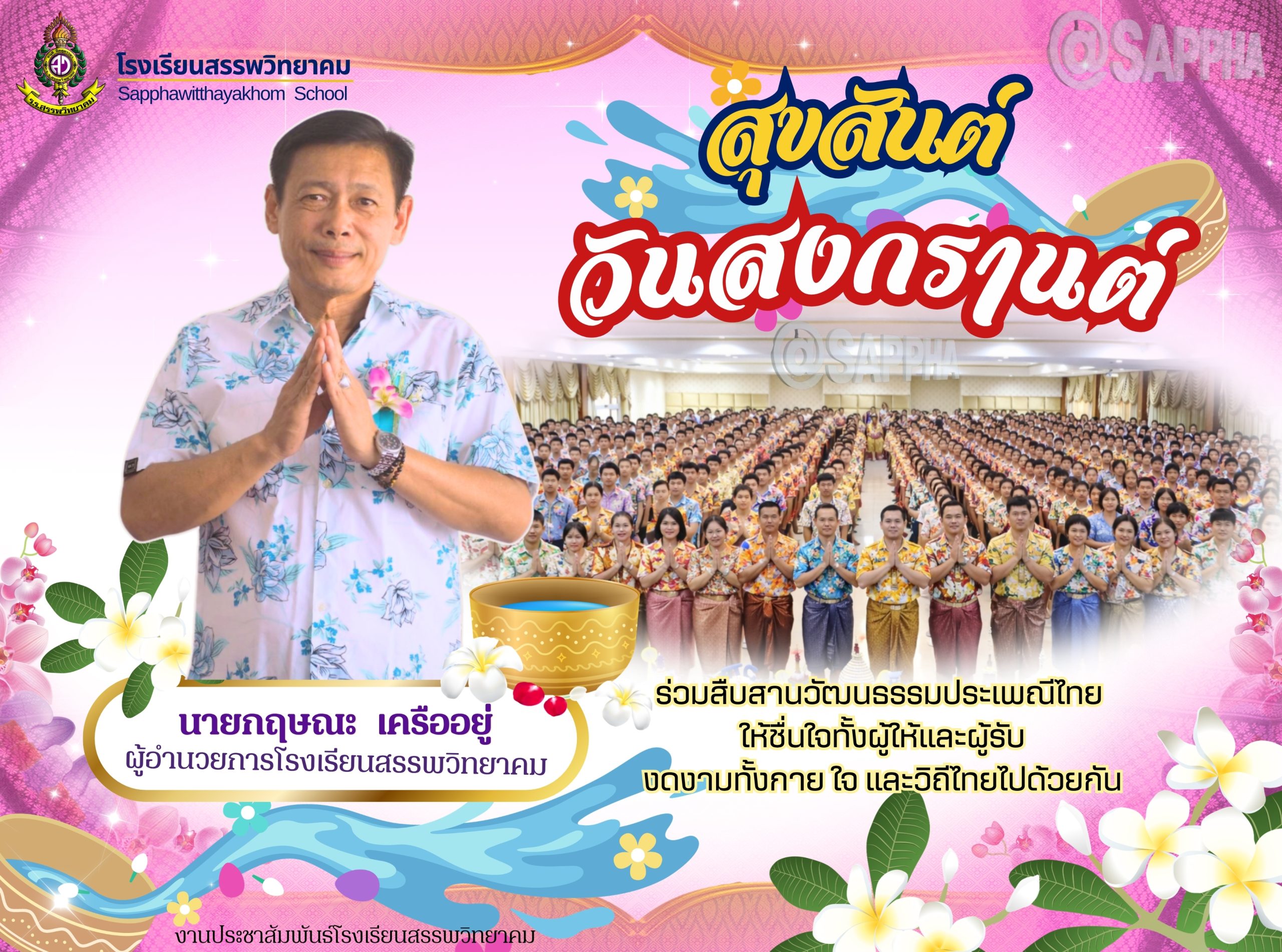 โรงเรียนสรรพวิทยาคม ได้จัดพิธีรดน้ำดำหัวผู้บริหารอาวุโส โรงเรียนสรรพวิยาคม