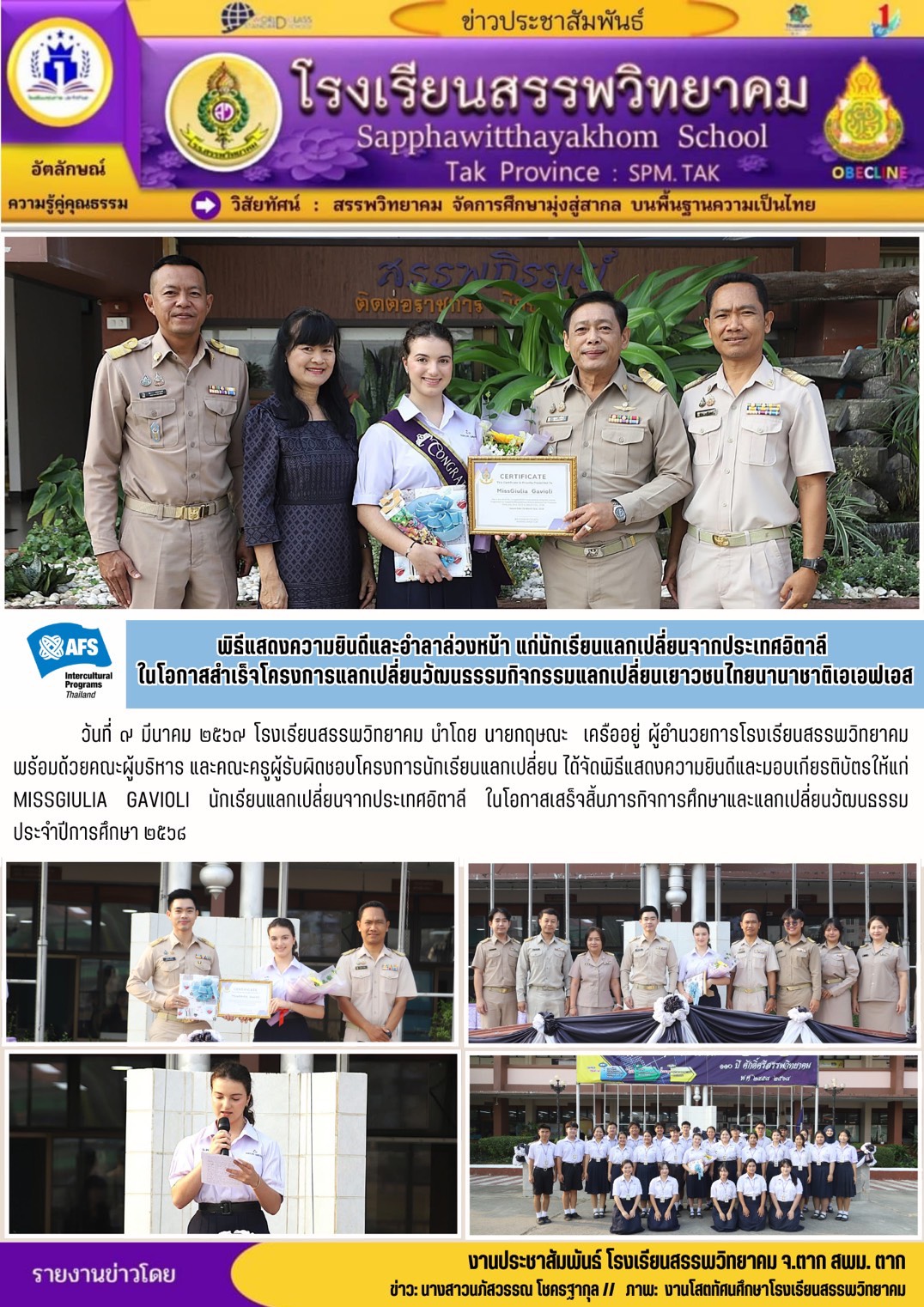 ตามที่โรงเรียนสรรพวิทยาคม ได้ประกาศรับสมัครนักเรียนเพื่อเข้าเรียนต่ดในระดับชั้นมัธยมศึกษาปีที่ ๔ (โควตาภายใน) ห้องเรียนภาษาเมียนมา (เพิ่มเติม) ประเภทสอบคัดเลือก ประจำปีการศึกษา ๒๕๖๙ ลงวันที่ ๕ มีนาคม …