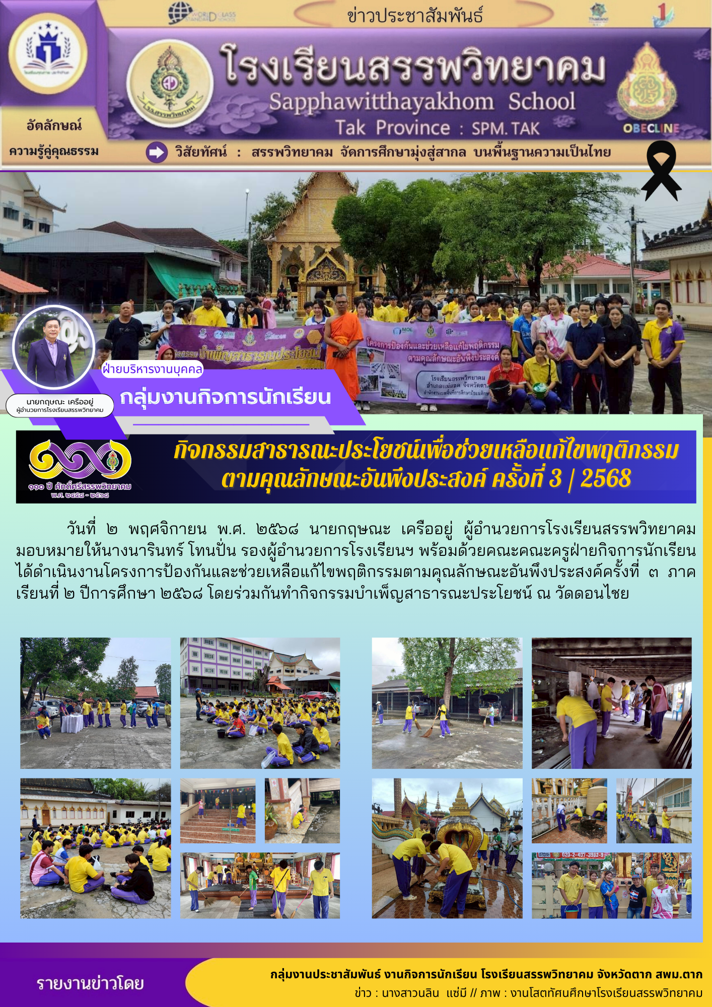 ![]() สารจากผู้อำนวยการ นายกฤษณะ เครืออยู่ ผู้อำนวยการโรงเรียนสรรพวิทยาคม |