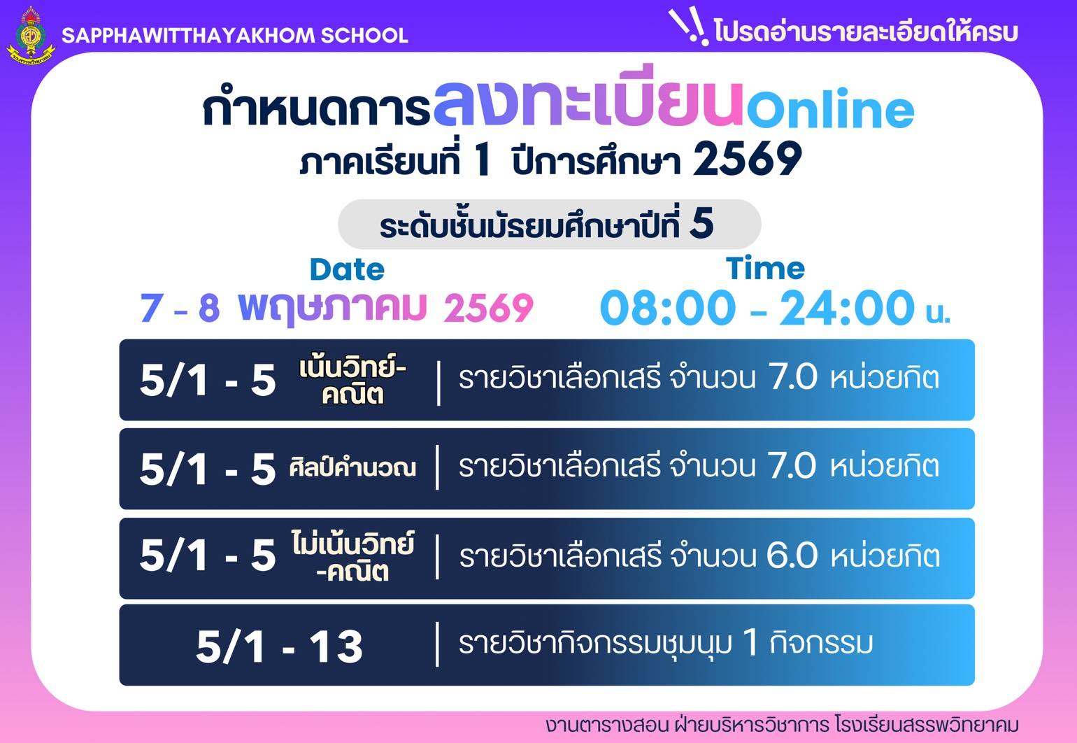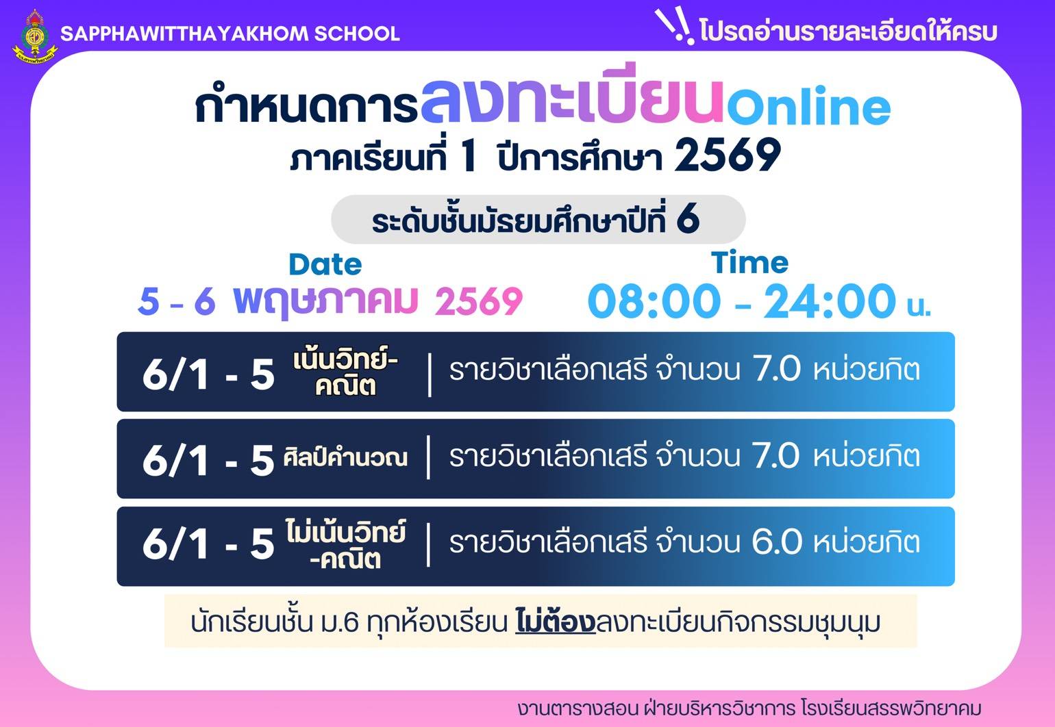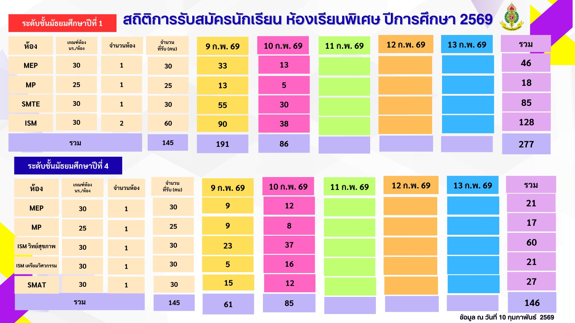 รับนักเรียน ปีการศึกษา ๒๕๖๙