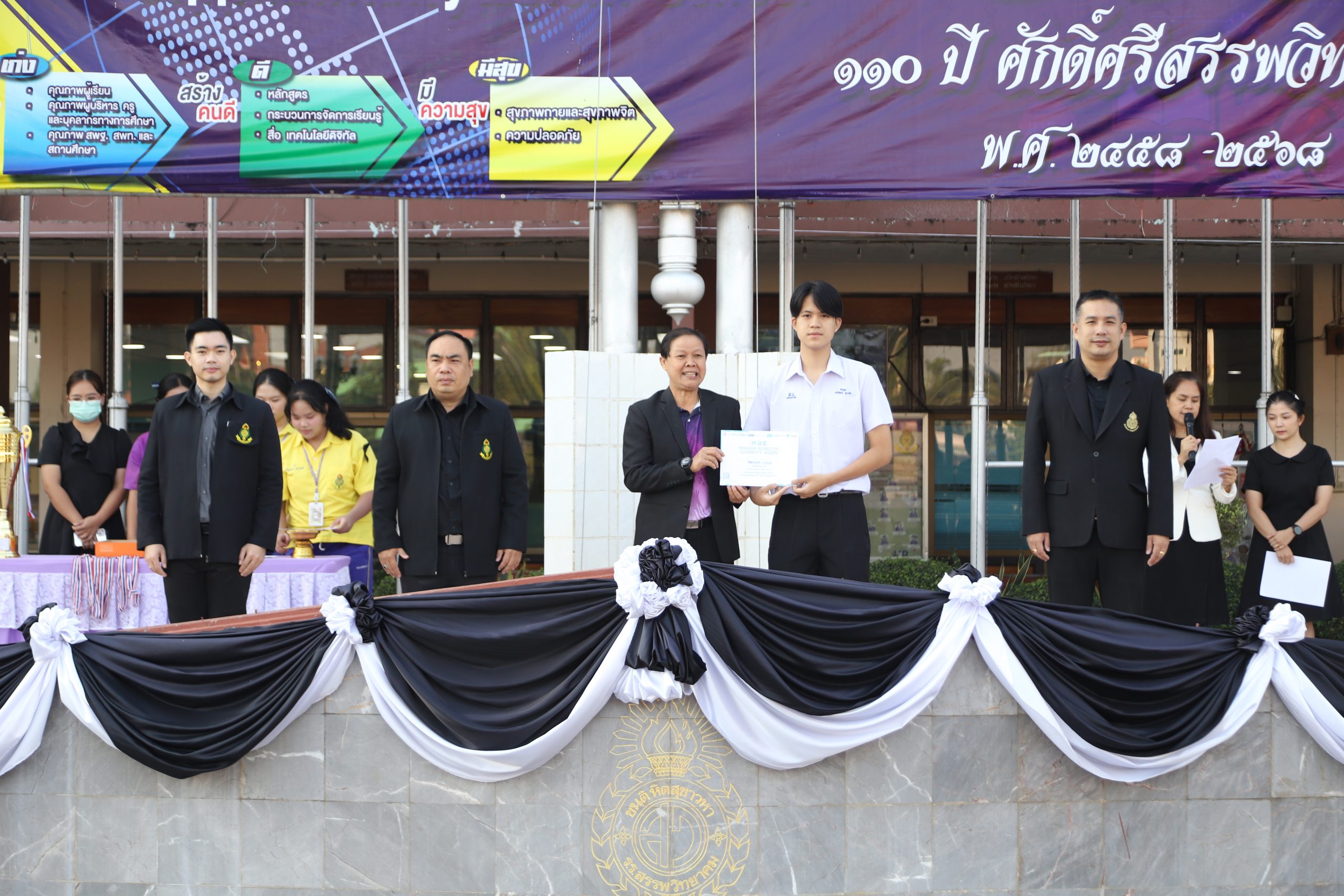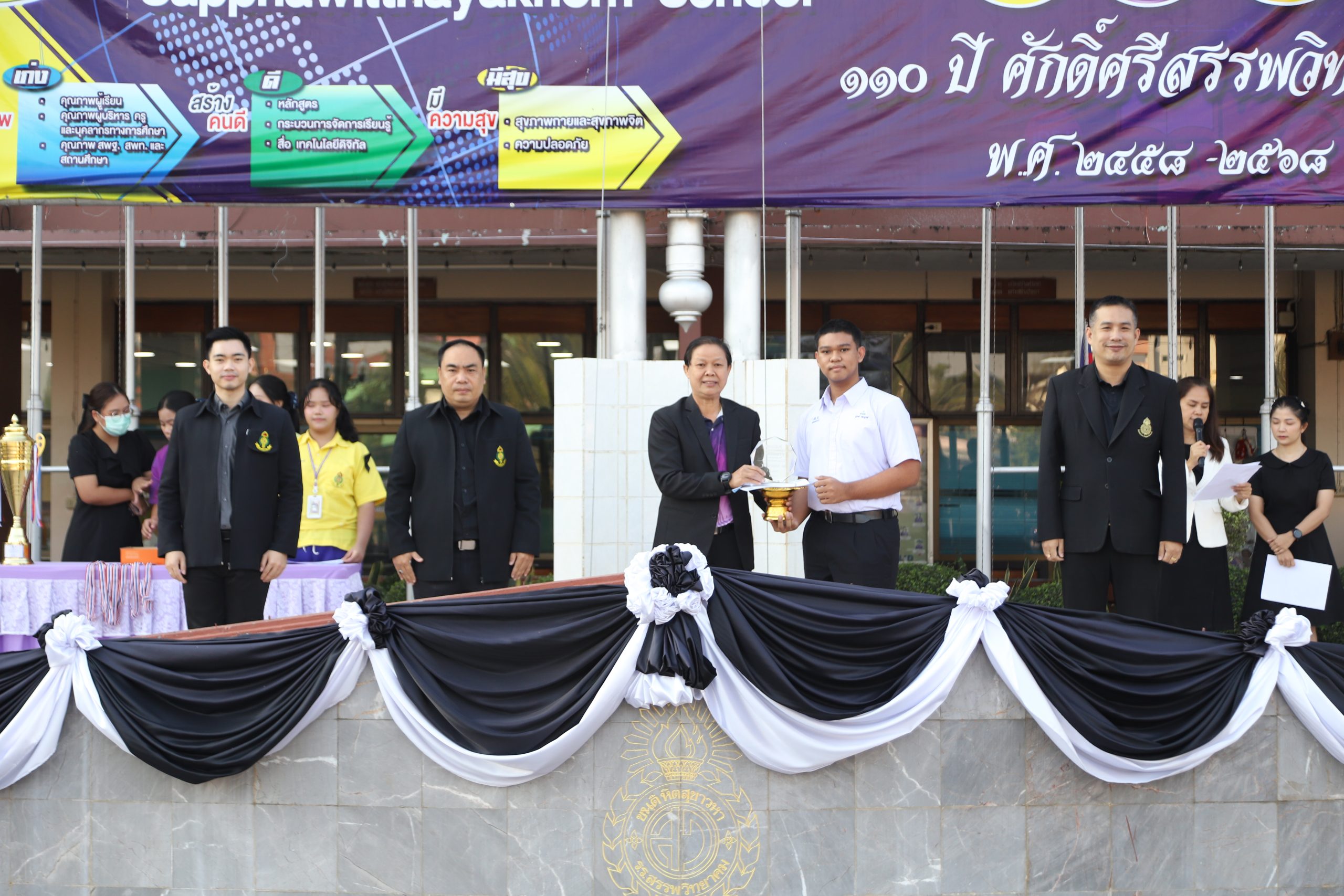 ในการนี้ นายกฤษณะ เครืออยู่ ผู้อำนวยการโรงเรียนสรรพวิทยาคม มอบหมายให้ นายอำพล สุรินทร์ รองผู้อำนวยการโรงเรียนสรรพวิทยาคม พร้อมด้วยคณะผู้บริหาร ร่วมมอบโล่รางวัลและเกียรติบัตรแก่นักเรียน ณ โรงเรียนสรรพวิทยาคม