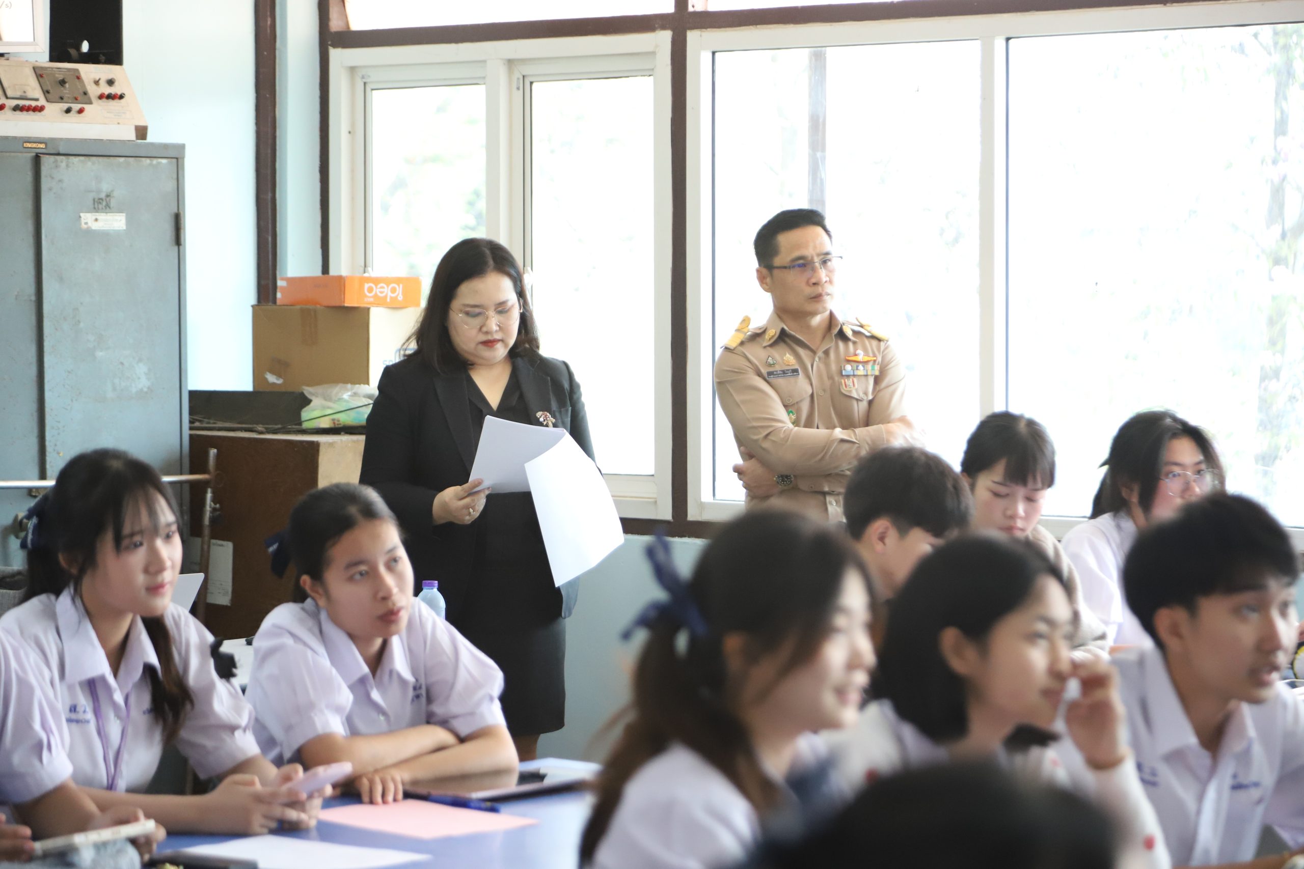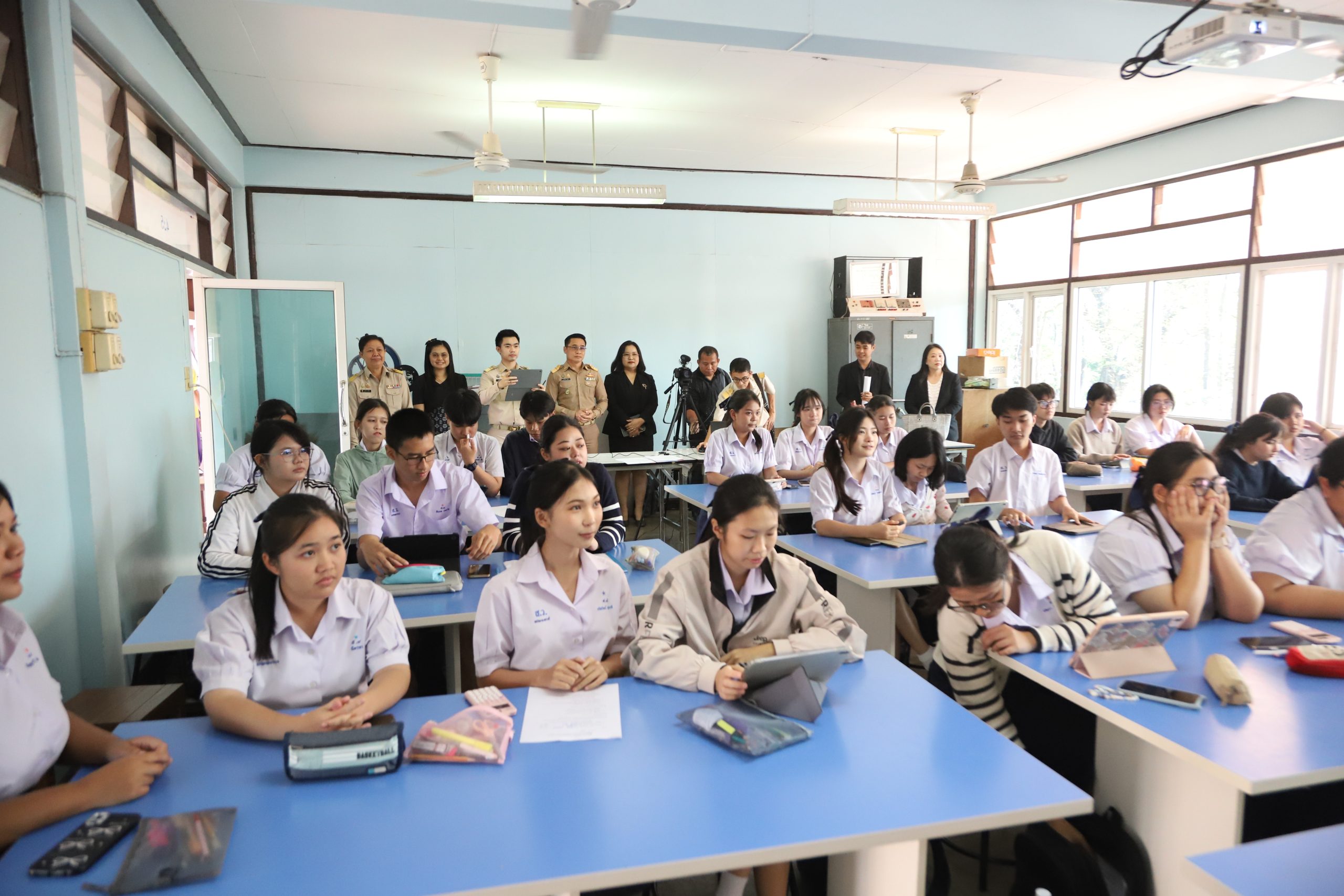 วันที่ ๙ กุมภาพันธ์ พ.ศ. ๒๕๖๙ นายกฤษณะ เครืออยู่ ผู้อำนวยการโรงเรียนสรรพวิทยาคม พร้อมด้วยคณะผู้บริหาร ครู บุคลากร และนักเรียน ร่วมต้อนรับ นายศักดิ์ชัย ใจแป้ รองผู้อำนวยการสำนักงานเขตพื้นที่การศึกษามัธยมศึกษาตาก และคณะ ในโอกาสตรวจเยี่ยม สังเกตการณ์การสอน และขยายผลของโครงการโรงเรียนนำร่อง (Demonstration School Program: DSP) ภาคเรียนที่ ๒ ปีการศึกษา ๒๕๖๘ ในรูปแบบ Online และ On-site โดยมี นายฐาปนะพงษ์ ทะนันชัย เป็นครูผู้รับการนิเทศ ณ ห้อง ๔๓๕ อาคาร ๔ ขุนสามชน โรงเรียนสรรพวิทยาคม