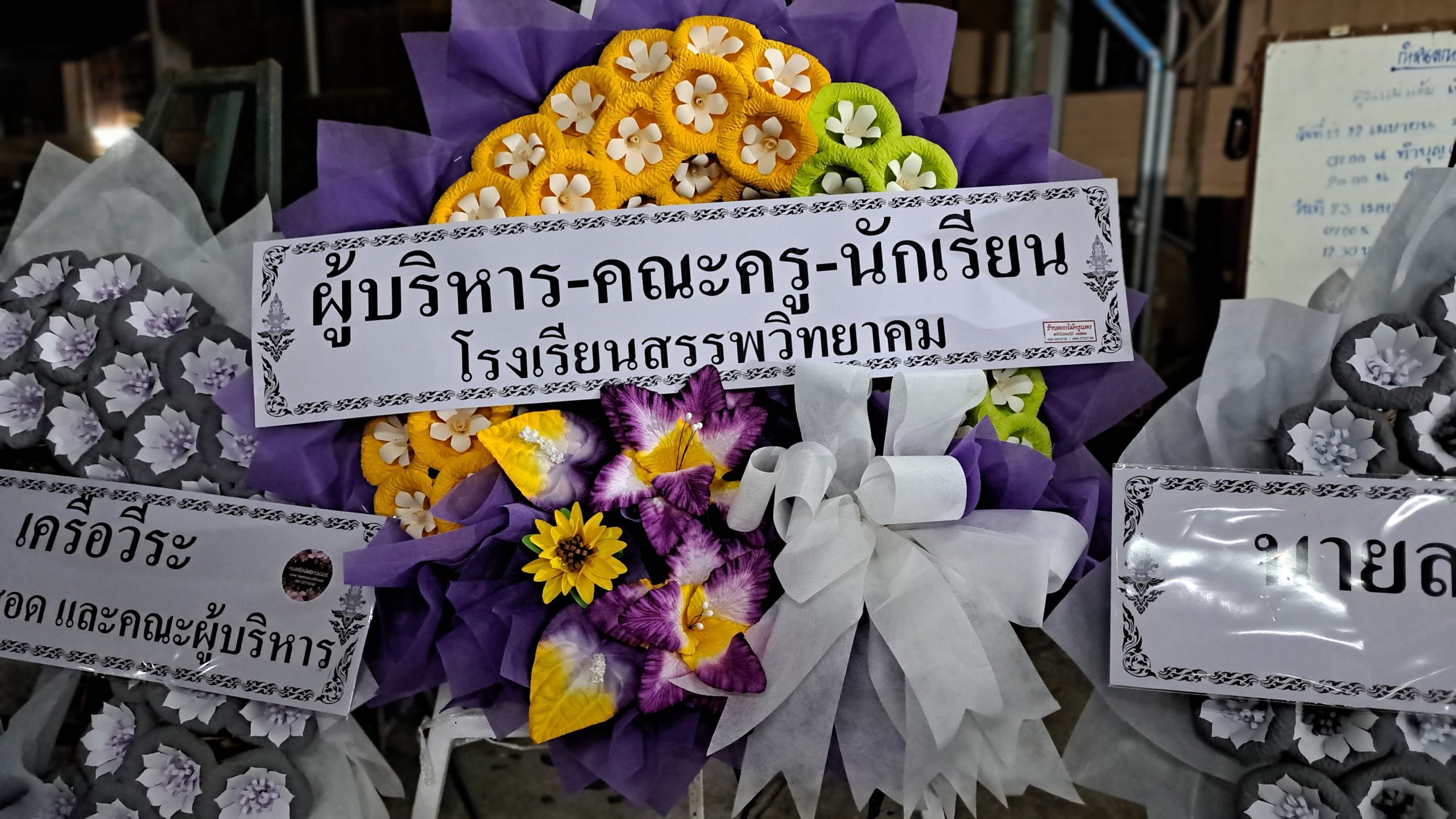 โรงเรียนสรรพวิทยาคม ร่วมเป็นเจ้าภาพวางพวงหรีดและฟังสวดพระอภิธรรมศพ เพื่อแสดงความไว้อาลัยแด่ คุณแม่แต้ม เกิดถมยา มารดานักการ นายมนัส เกิดถมยา