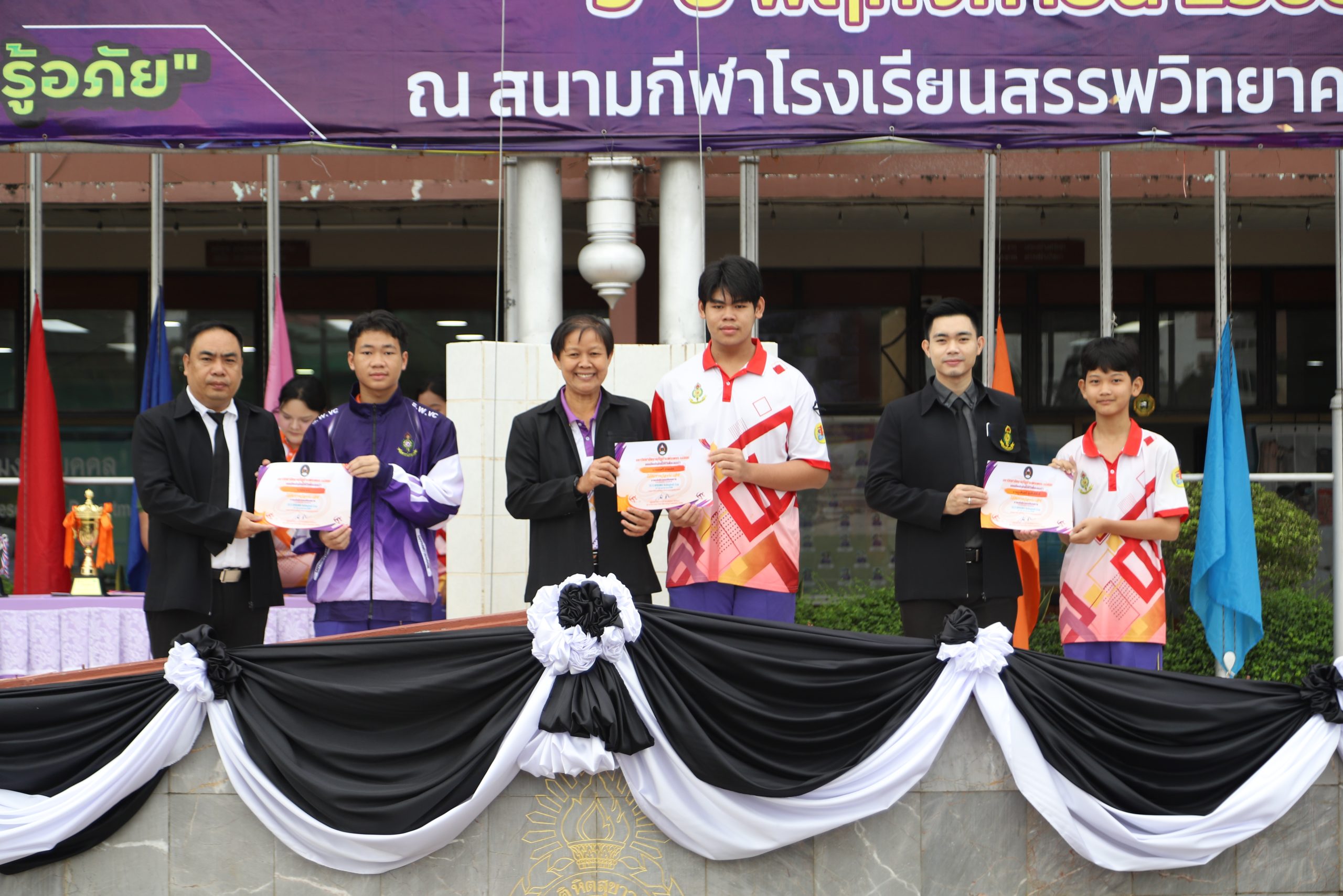 ในการนี้ นายกฤษณะ เครืออยู่ ผู้อำนวยการโรงเรียนสรรพวิทยาคม มอบหมายให้ นางนารินทร์ โทนปั่น รองผู้อำนวยการโรงเรียนสรรพวิทยาคม พร้อมคณะผู้บริหาร เป็นผู้มอบเกียรติบัตร ณ โรงเรียนสรรพวิทยาคม