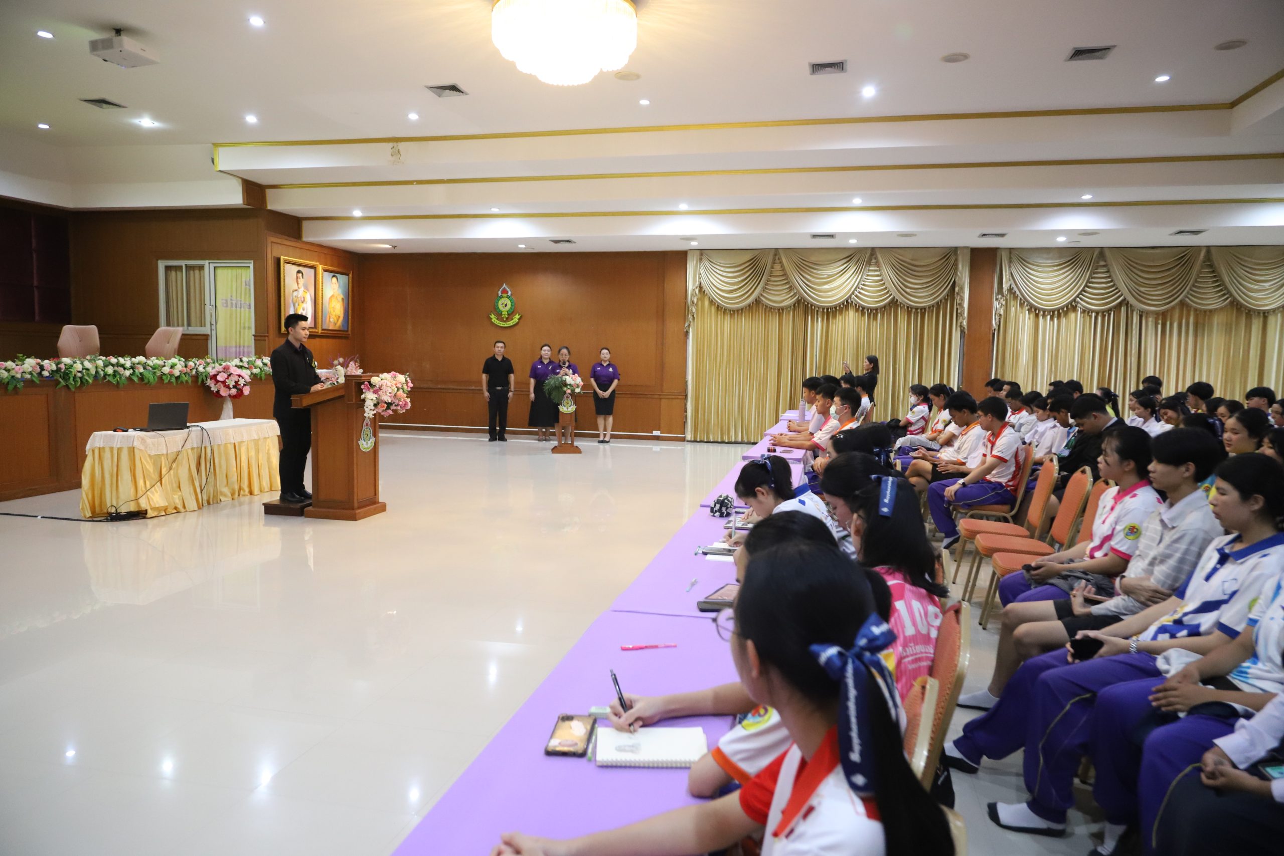 ในการนี้ นายกฤษณะ เครืออยู่ ผู้อำนวยการโรงเรียนสรรพวิทยาคม มอบหมายให้ นายกฤตเมธ อุ่นโพธิ รองผู้อำนวยการโรงเรียนสรรพวิทยาคม เป็นประธานในพิธี พร้อมด้วยคณะครู และนักเรียนชั้นมัธยมศึกษาปีที่ ๖ ร่วมกิจกรรมอย่างพร้อมเพรียง ณ ห้องประชุมใหญ่ อาคารเฉลิมพระเกียรติ โรงเรียนสรรพวิทยาคม