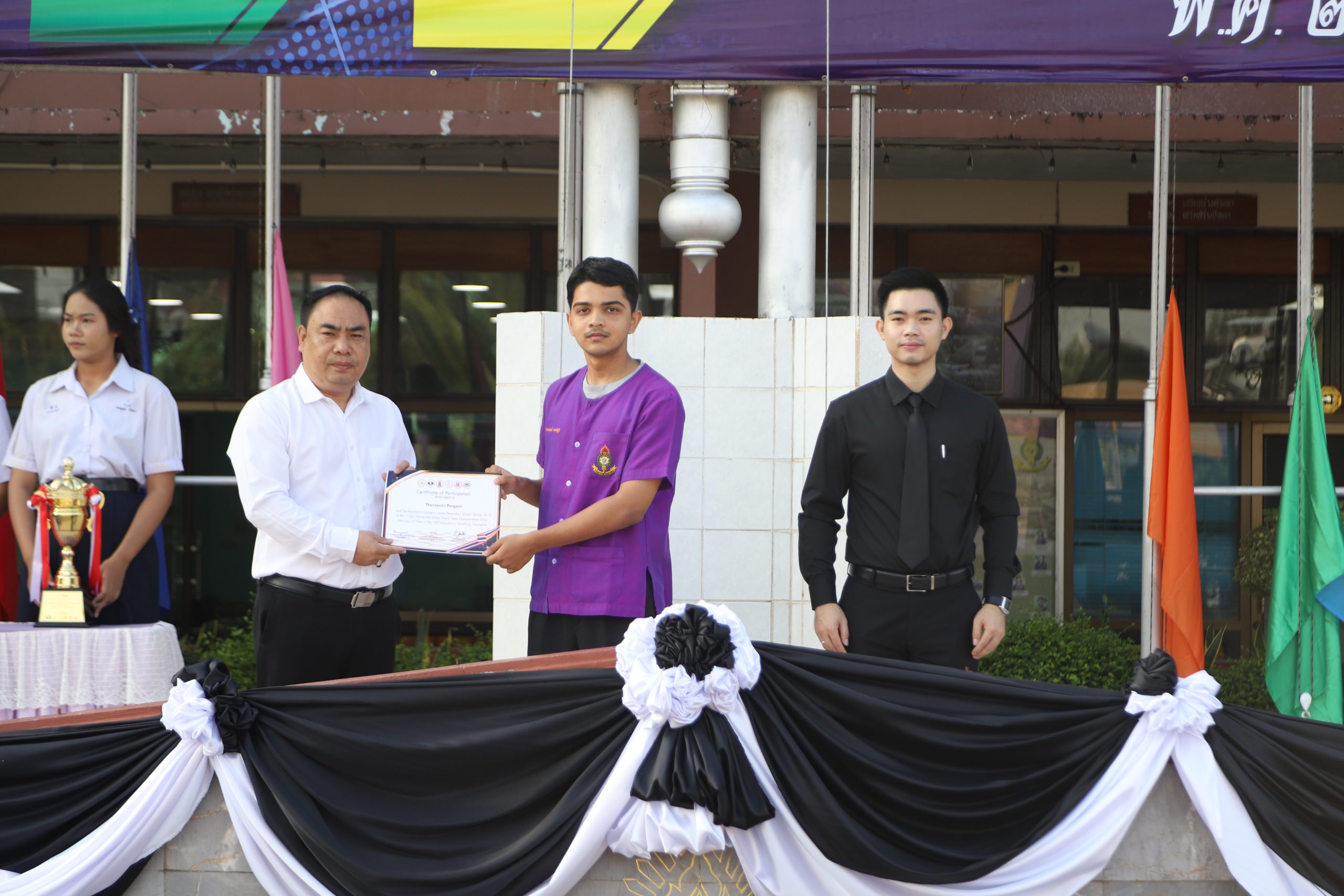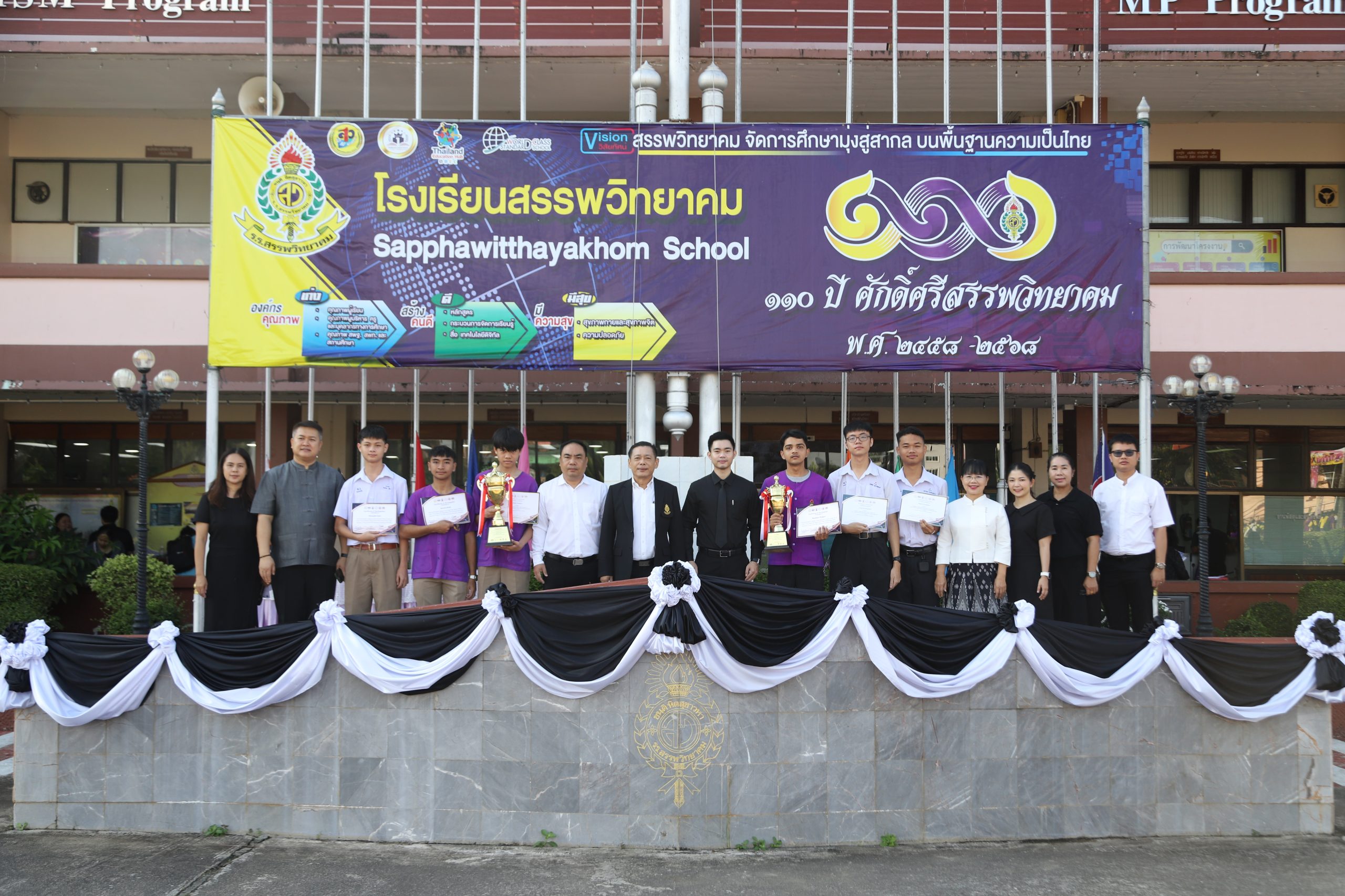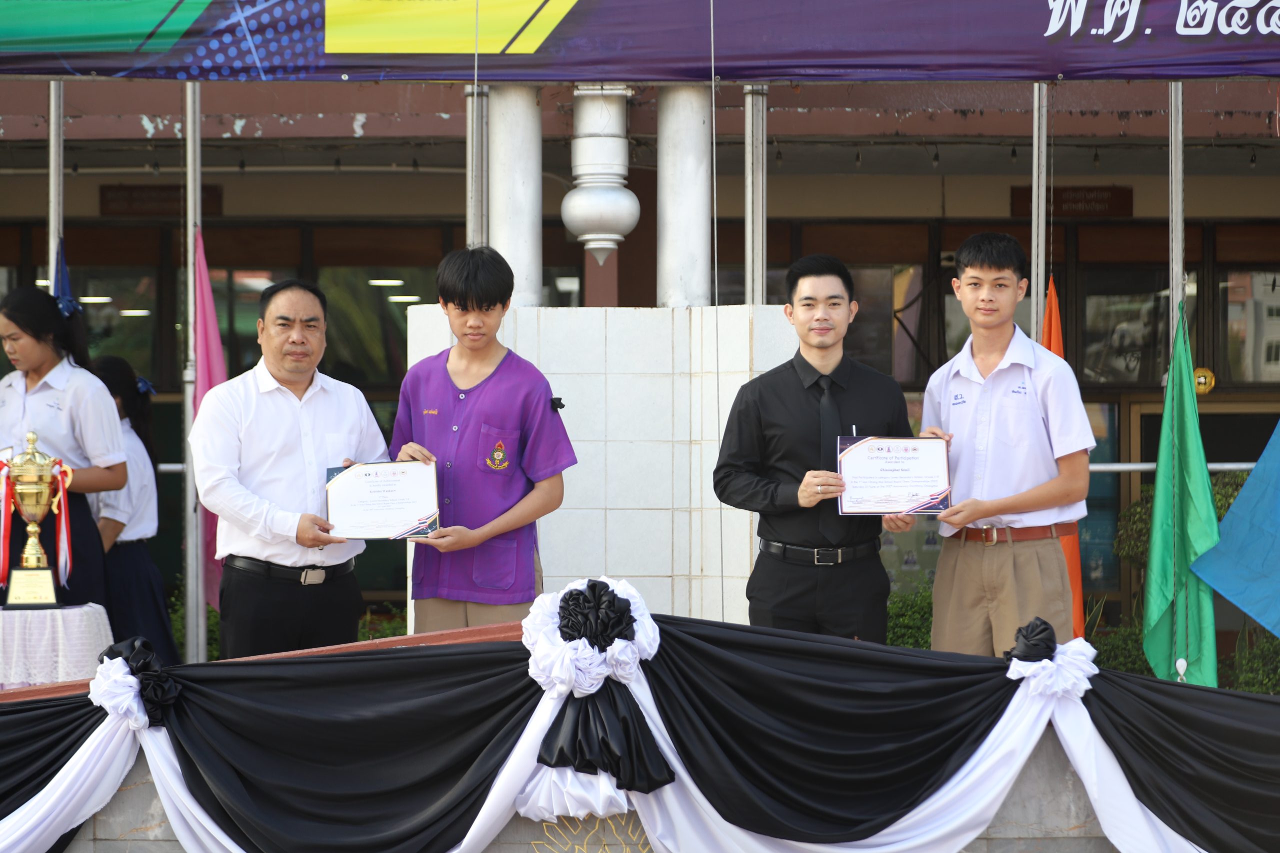 ในการนี้ นายกฤษณะ เครืออยู่ ผู้อำนวยการโรงเรียนสรรพวิทยาคม มอบหมายให้ นายกฤตเมธ อุ่นโพธิ รองผู้อำนวยการโรงเรียนสรรพวิทยาคม พร้อมด้วยคณะผู้บริหาร เป็นผู้มอบถ้วยรางวัลและเกียรติบัตร ณ โรงเรียนสรรพวิทยาคม