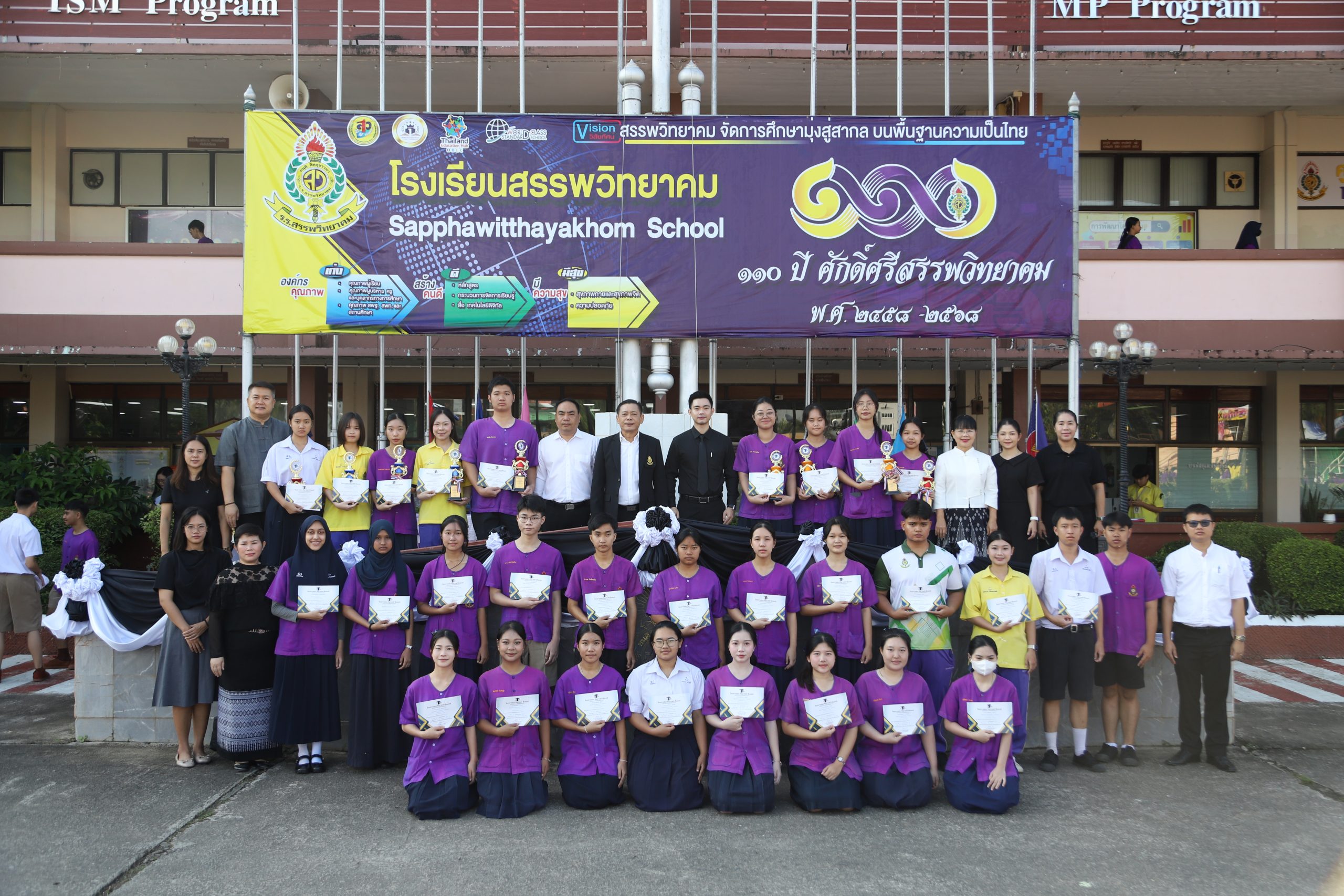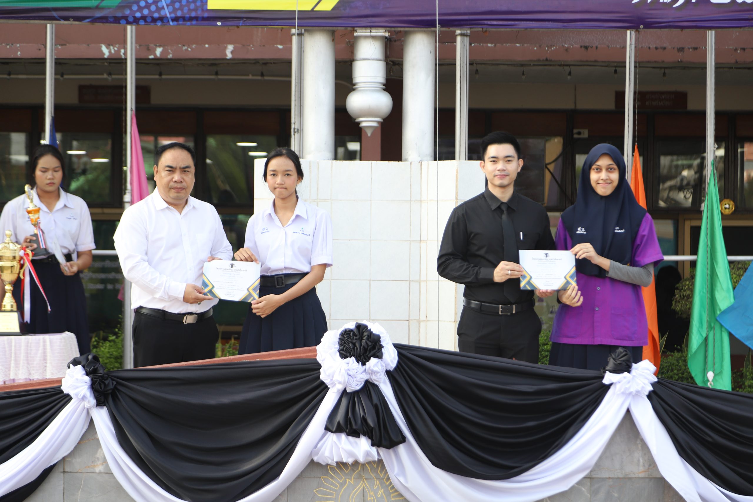 ในการนี้ นายกฤษณะ เครืออยู่ ผู้อำนวยการโรงเรียนสรรพวิทยาคม มอบหมายให้ นายกฤตเมธ อุ่นโพธิ รองผู้อำนวยการโรงเรียนสรรพวิทยาคม พร้อมด้วยคณะผู้บริหาร เป็นผู้มอบถ้วยรางวัลและเกียรติบัตร ณ โรงเรียนสรรพวิทยาคม