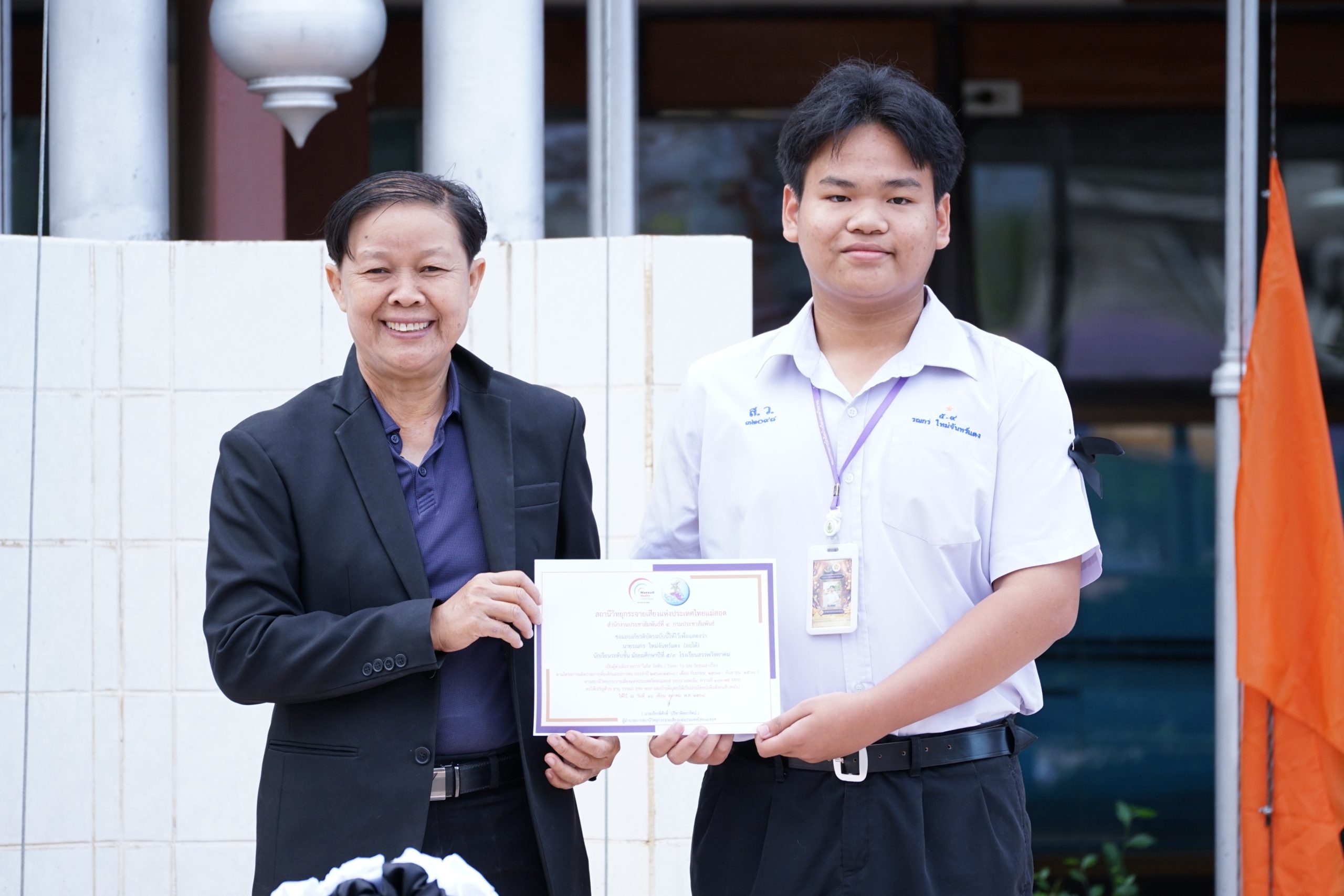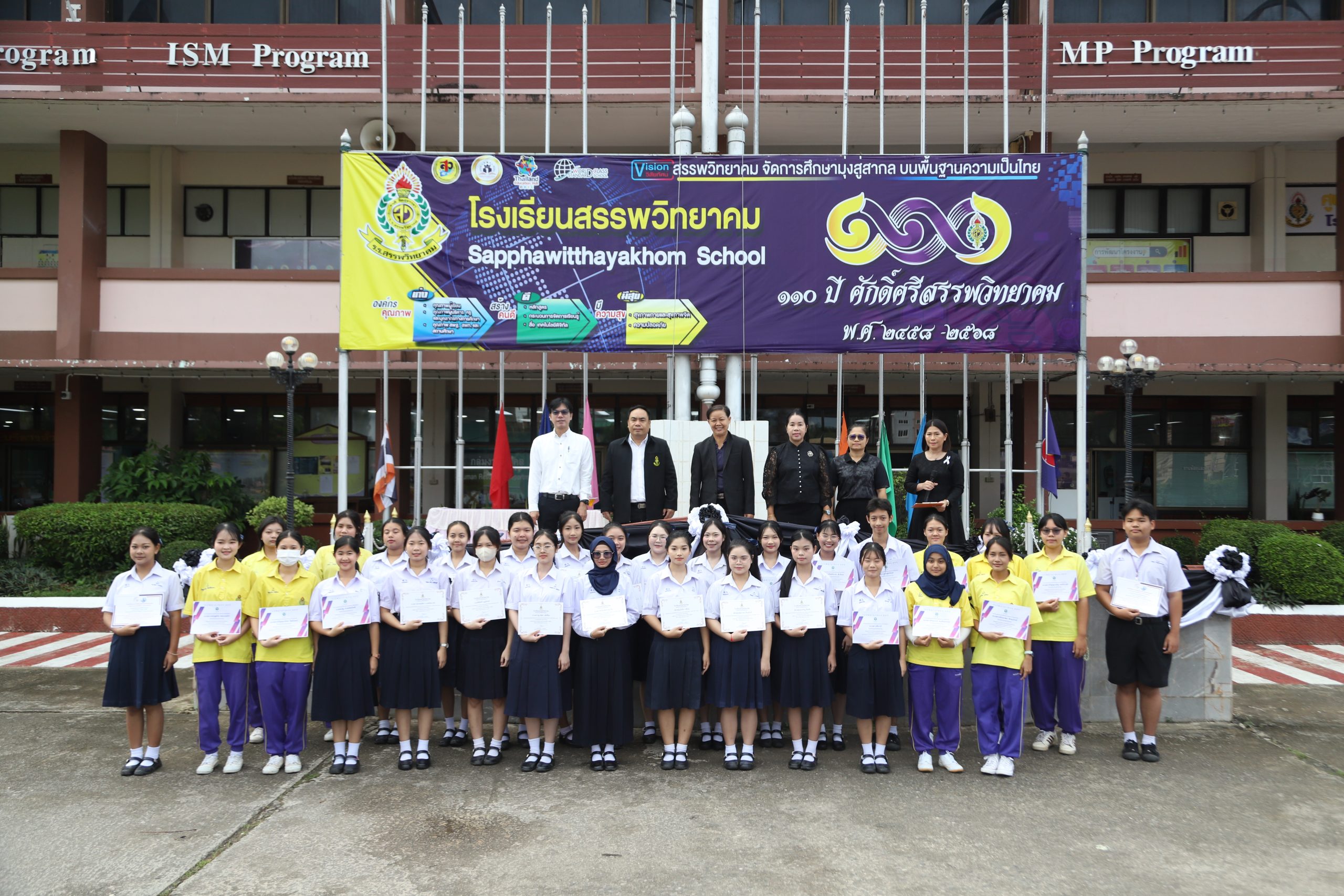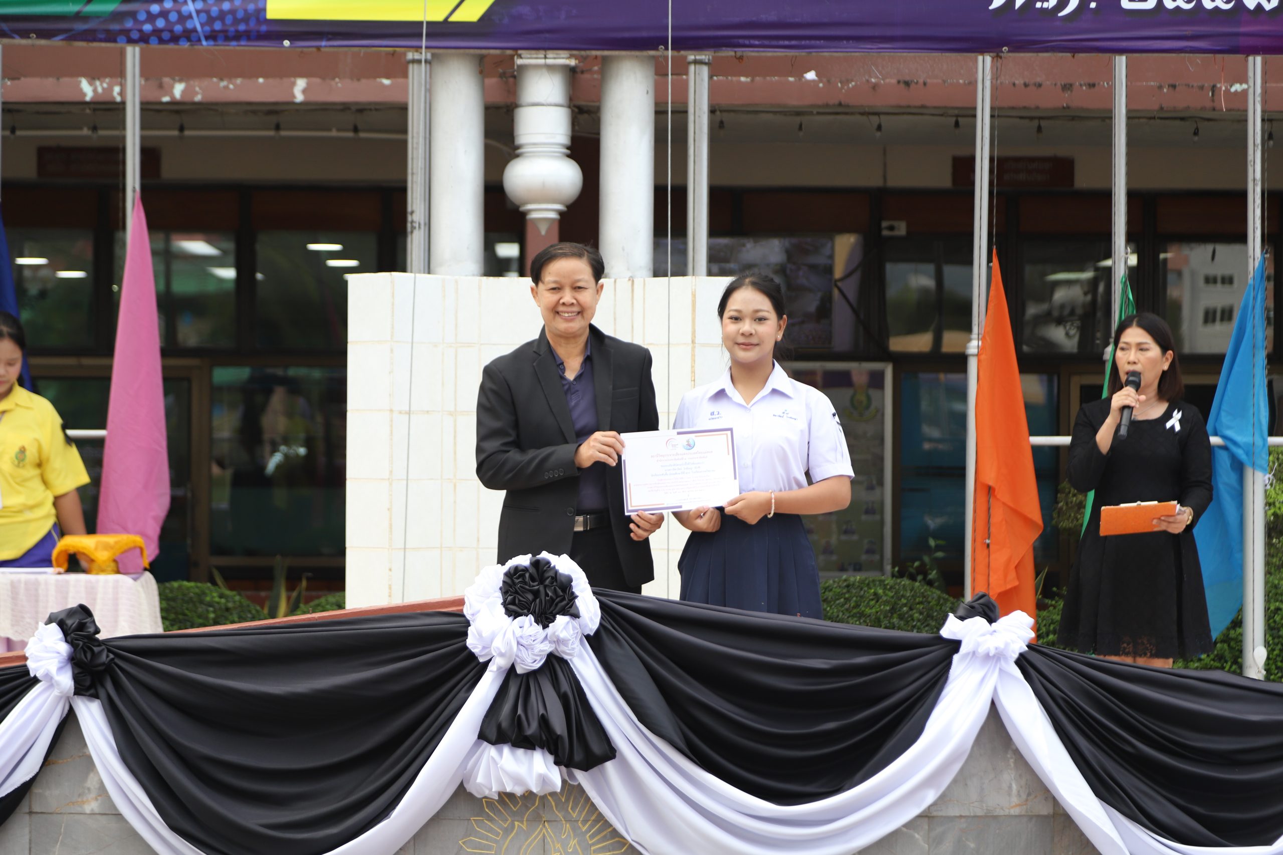 ในการนี้ นายกฤษณะ เครืออยู่ ผู้อำนวยการโรงเรียนสรรพวิทยาคม มอบหมายให้ นางนารินทร์ โทนปั่น รองผู้อำนวยการโรงเรียนสรรพวิทยาคม เป็นผู้มอบเกียรติบัตร ณ โรงเรียนสรรพวิทยาคม