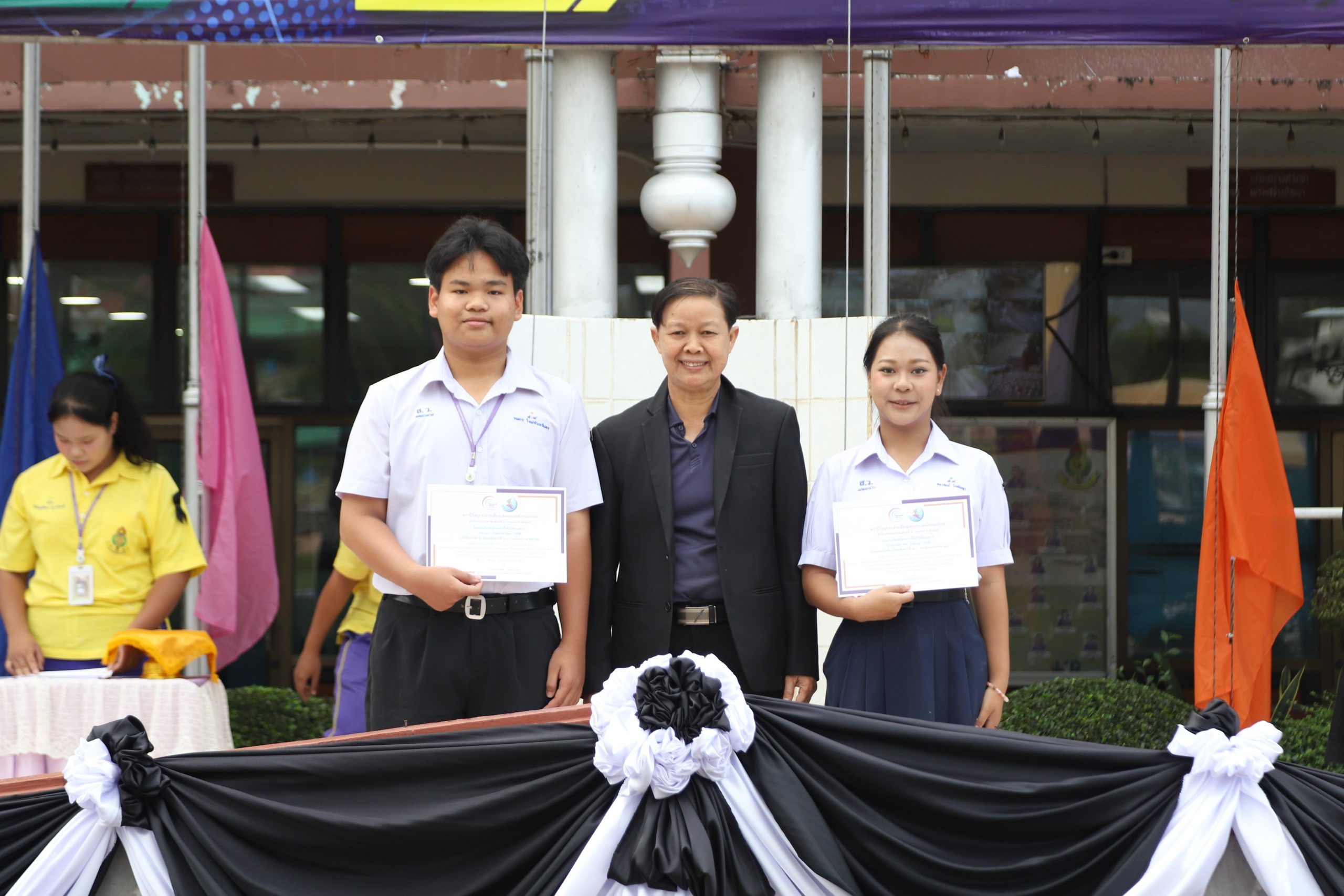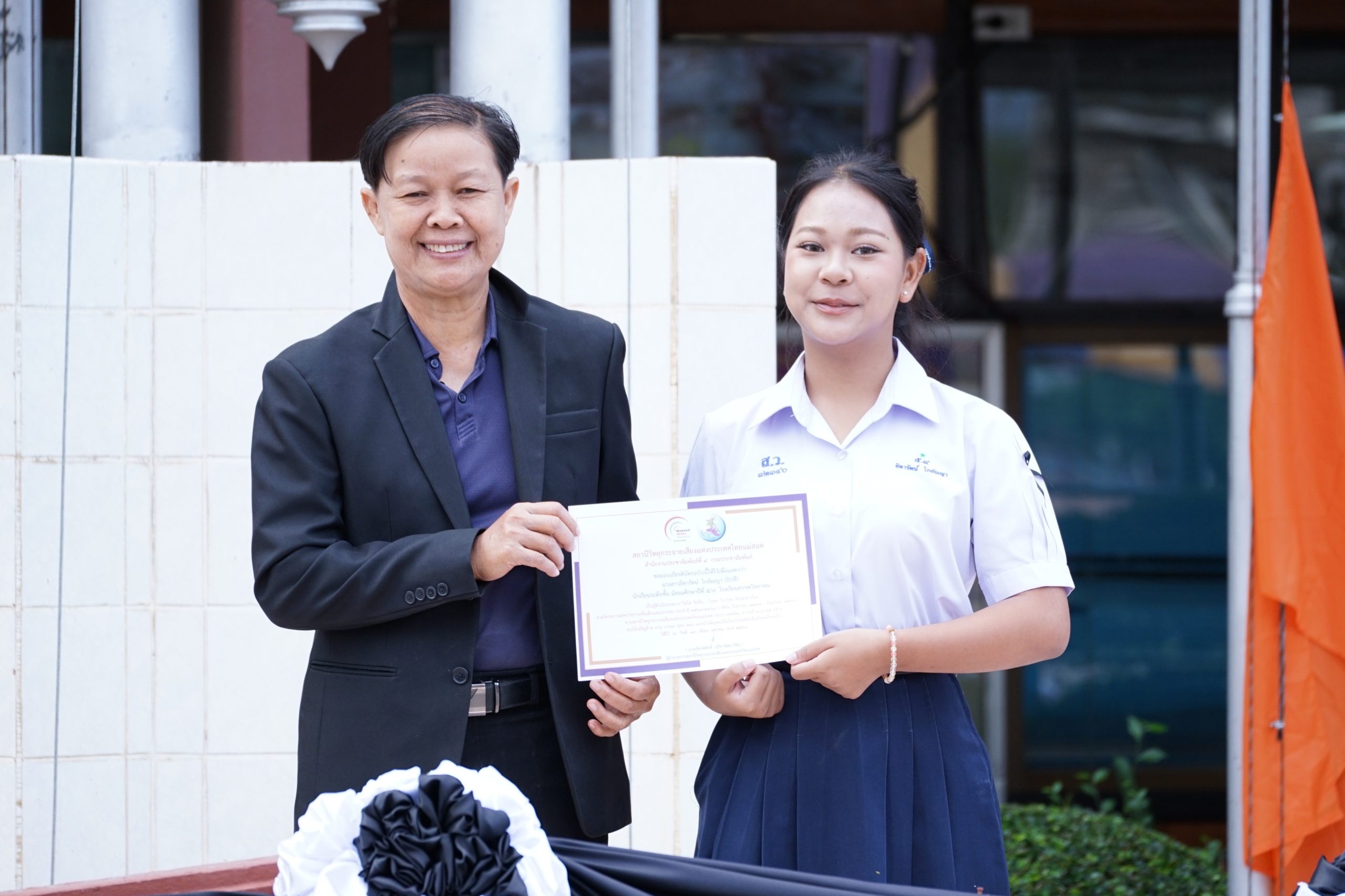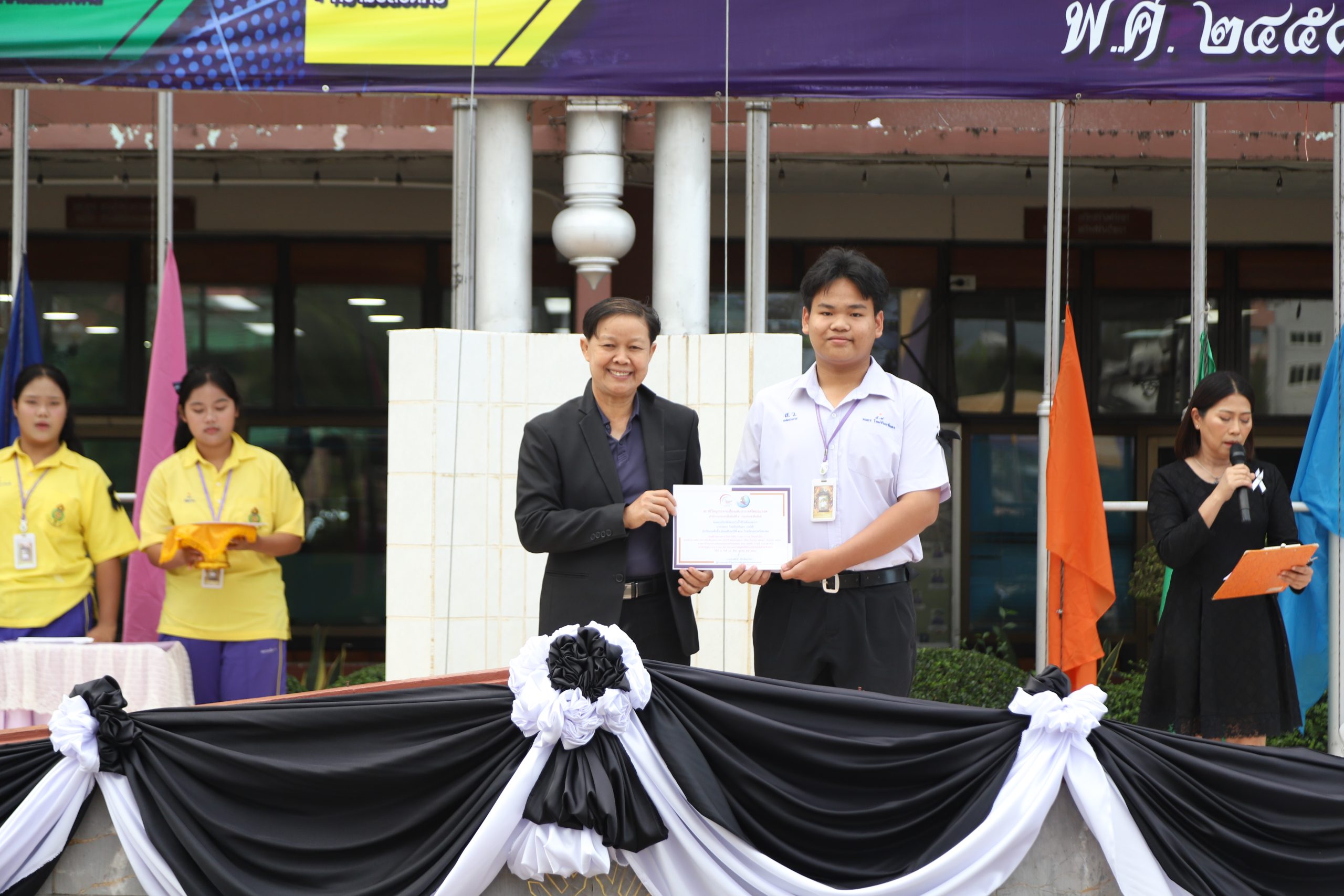 ในการนี้ นายกฤษณะ เครืออยู่ ผู้อำนวยการโรงเรียนสรรพวิทยาคม มอบหมายให้ นางนารินทร์ โทนปั่น รองผู้อำนวยการโรงเรียนสรรพวิทยาคม เป็นผู้มอบเกียรติบัตร ณ โรงเรียนสรรพวิทยาคม