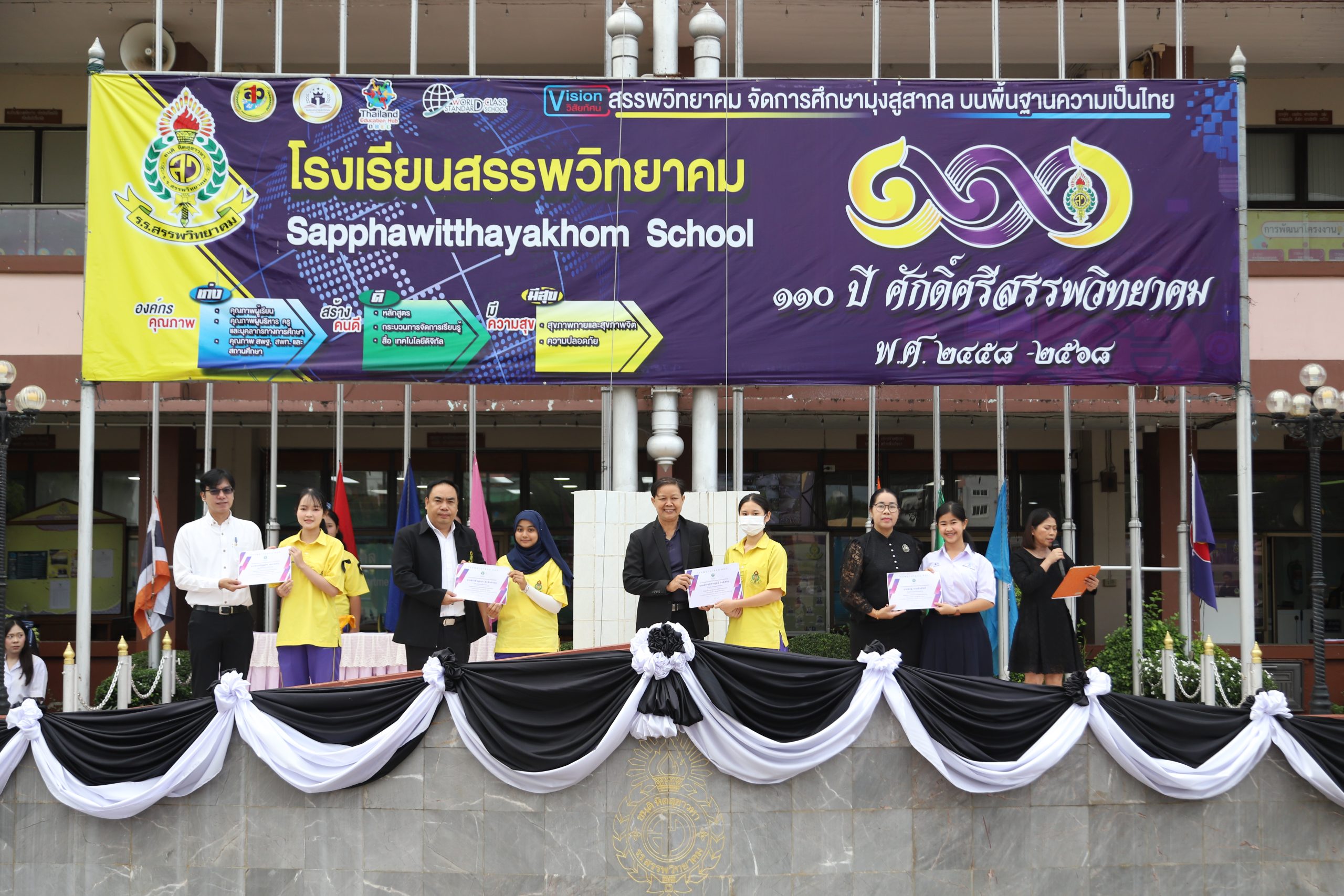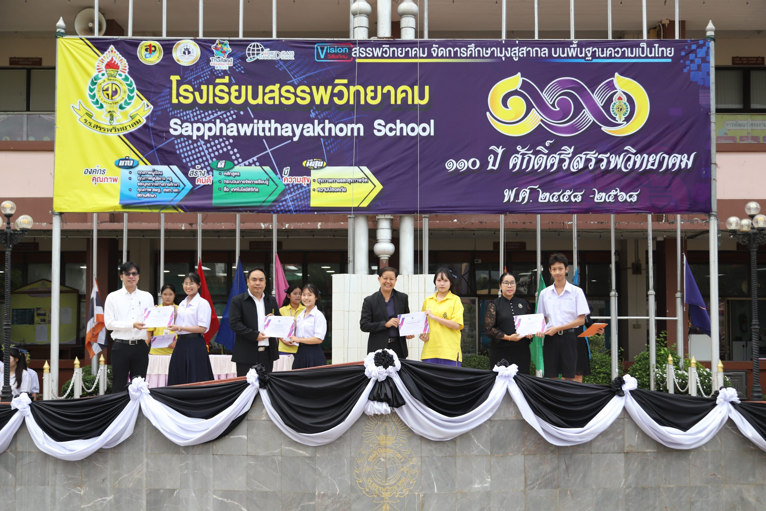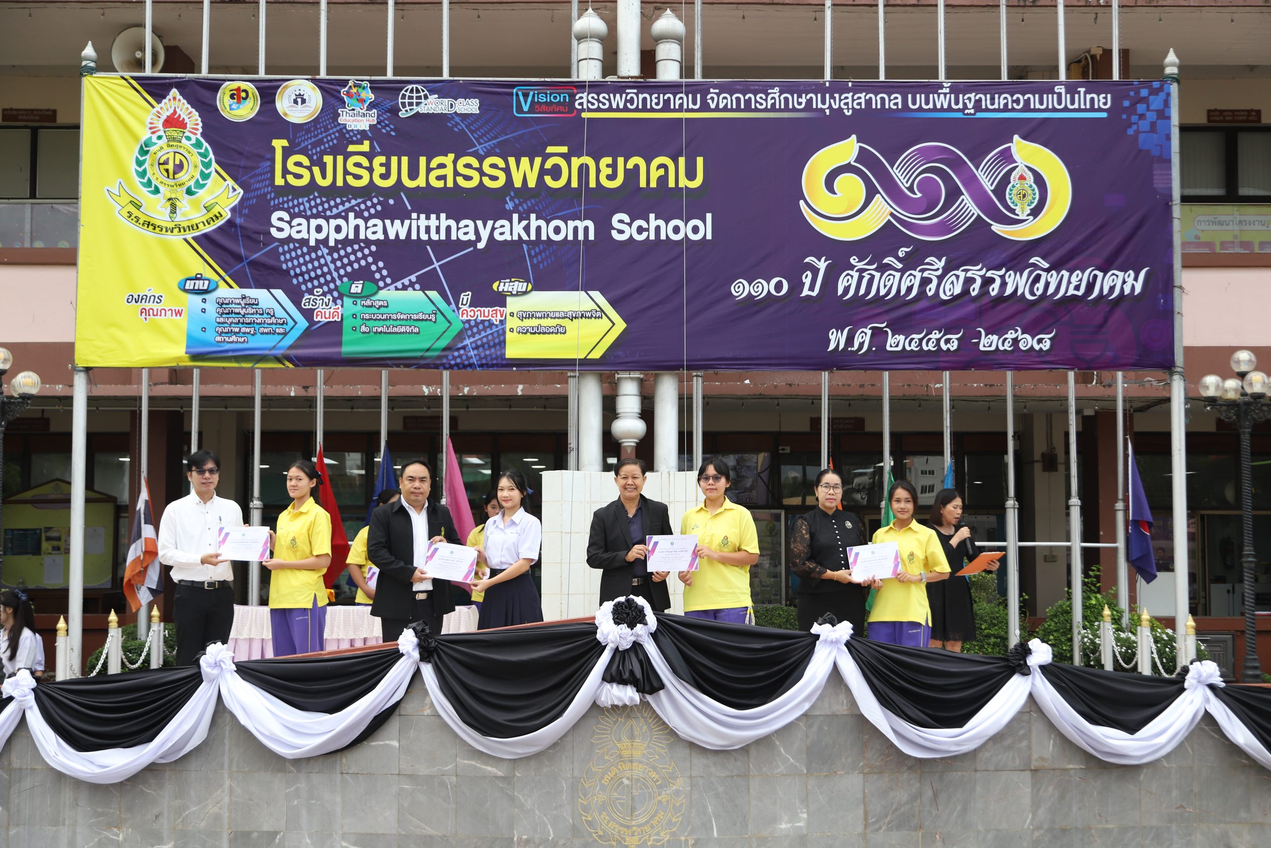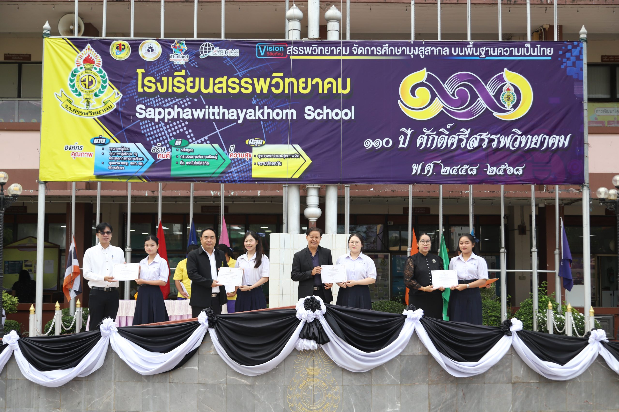 ในการนี้ นายกฤษณะ เครืออยู่ ผู้อำนวยการโรงเรียนสรรพวิทยาคม มอบหมายให้ นางนารินทร์ โทนปั่น รองผู้อำนวยการโรงเรียนสรรพวิทยาคม พร้อมด้วยคณะผู้บริหาร เป็นผู้มอบเกียรติบัตร ณ โรงเรียนสรรพวิทยาคม